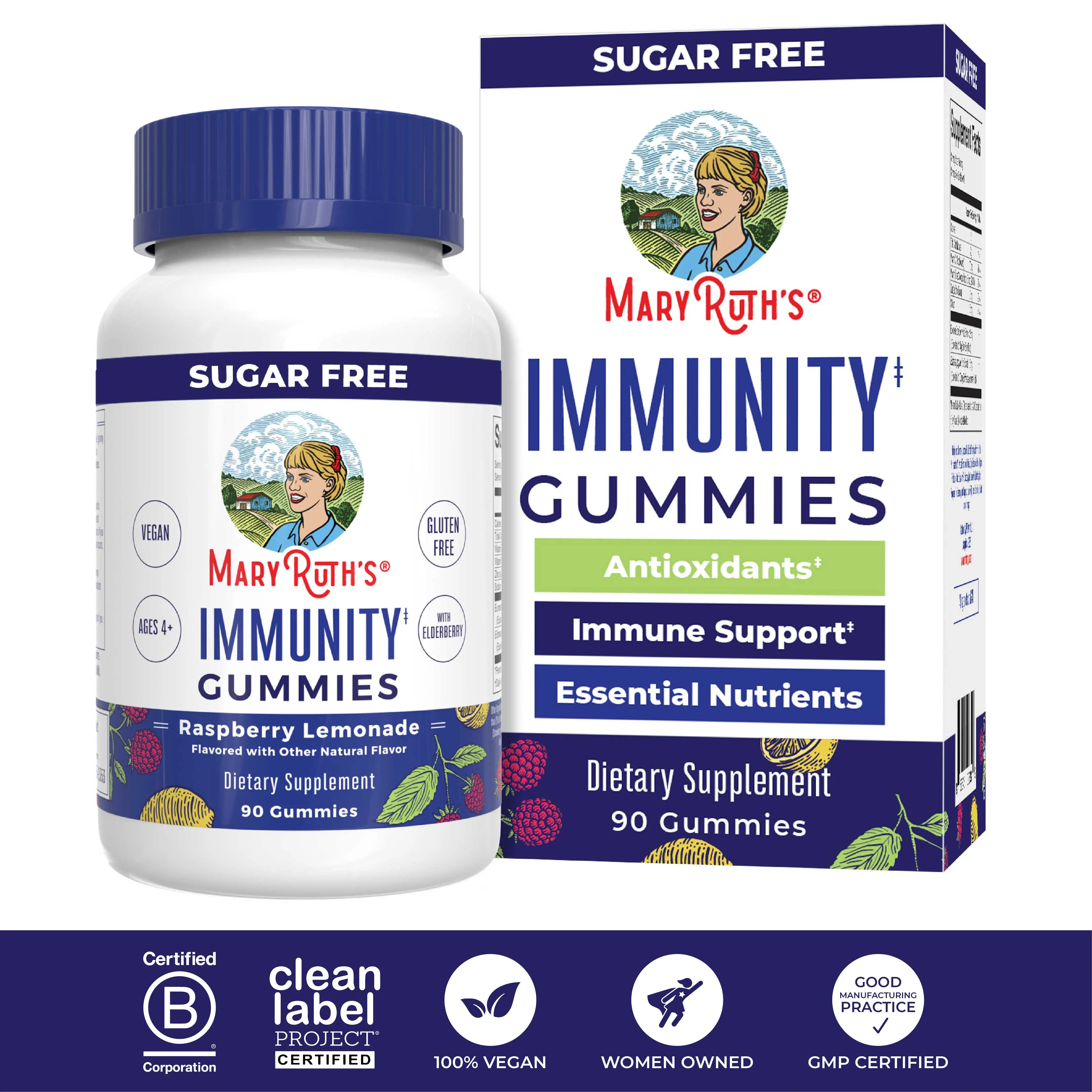 For Most Lifestyles: MaryRuth's Immunity Gummies are Non-GMO, vegan, no gelatin, pectin based, dairy free, gluten free, nut free, soy free, sugar free, made in a GMP Facility. Clean Label Project Certified. B Corp Certified.