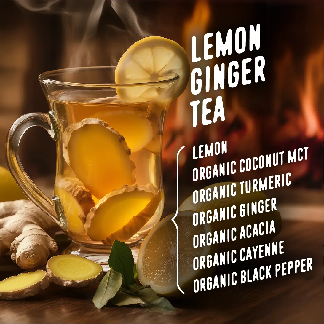 IngredientsOrganic coconut MCT,Organic Turmeric,Organic Ginger,Crystallized Lemon Powder (citric acid,lemon oil,lemon juice),Organic Acacia Fiber,Organic Monk Fruit Extract,Organic Cayenne Powder,Organic Black Pepper Powder