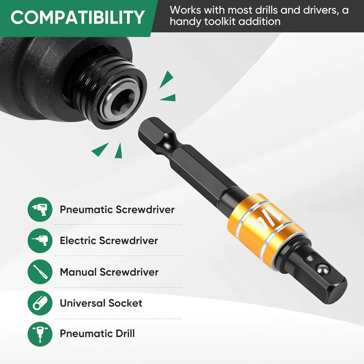 ·ONE SET OF IMPACT SOCKET ADAPTERS, UNLIMITED USES – The ¼” Hex Shank will fit all Quick Change systems and standard drill chucks, which is ideal for both professionals and DIYers.
