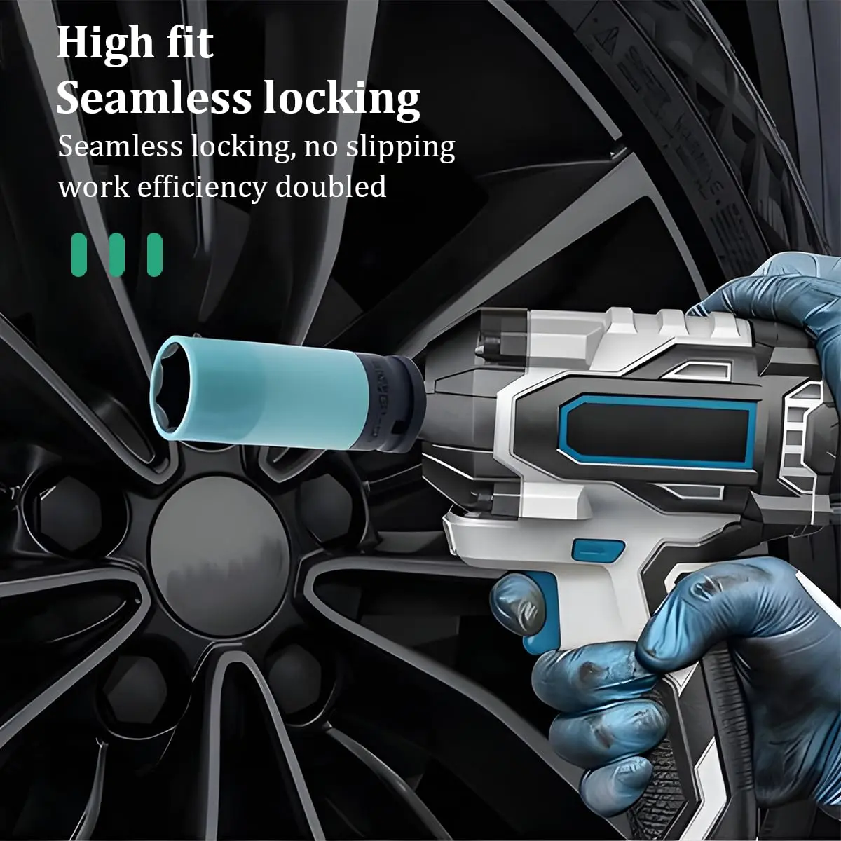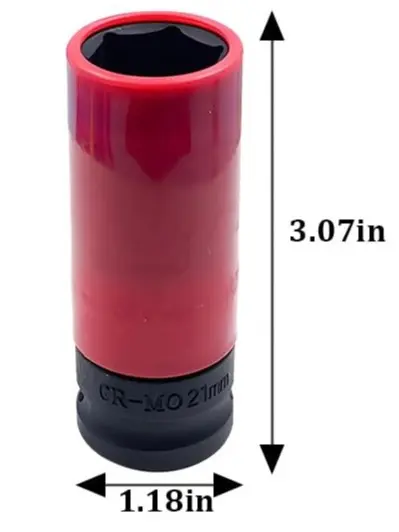 ·Easy Installation: First, select a colored socket that matches the tire nut specifications, and use the anti slip fixing pin hole to tightly clamp it with a 1/2-inch impact wrench or pneumatic ratchet, ensuring seamless connection and no slipping. Then align the tire nut and start the tool to efficiently complete the disassembly and assembly operation. The entire process is convenient and labor-saving, and can effectively protect the wheel hub from scratches.