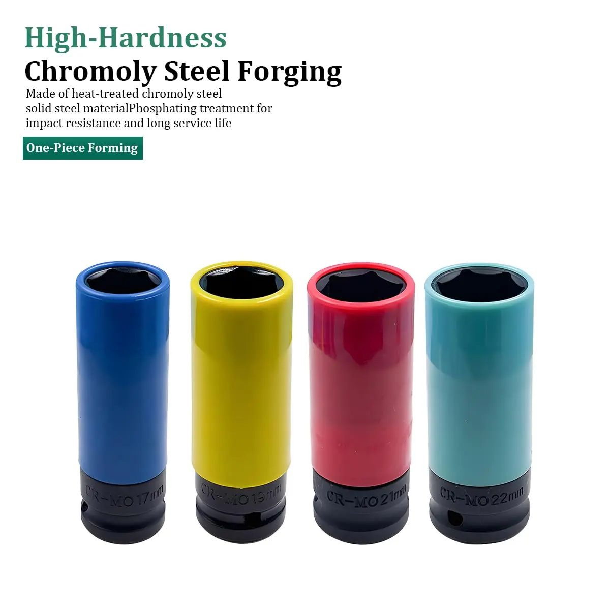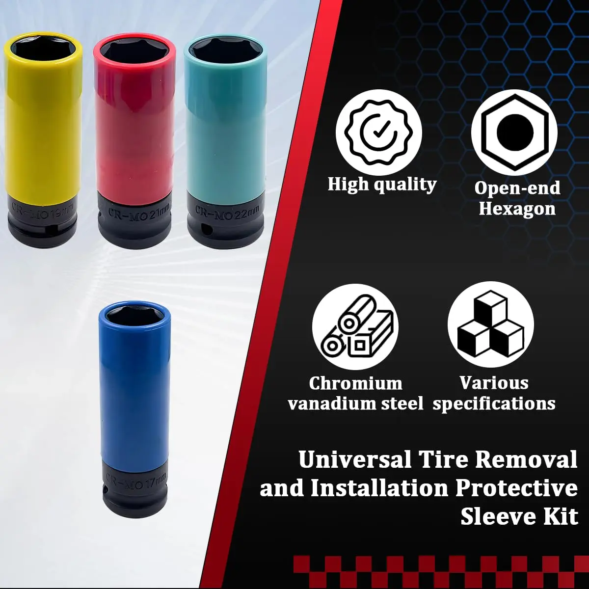 ·4 Specifications: This product includes 4 commonly used specifications, namely 17mm (dark blue), 19mm (yellow), 21mm (red), and 22mm (light blue) sleeves. Each sleeve is equipped with a color coded plastic sleeve, with different sizes corresponding to fixed colors, allowing you to quickly and accurately find the appropriate specifications without repeatedly comparing sizes.
