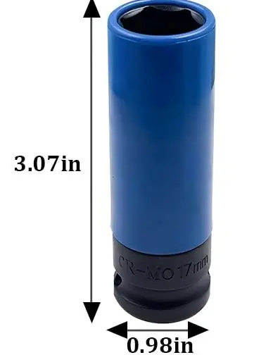 ·Widely Used: This product has a length of 3.11 inch and a square hole inner diameter of 1/2 inch. This product is compatible with 1/2 inch impact wrenches, pneumatic ratchet and other tools, and can be widely used for tire disassembly and assembly operations of various vehicle models. Whether it is a family sedan, SUV, or light commercial vehicle, it can be matched with the corresponding socket specifications.