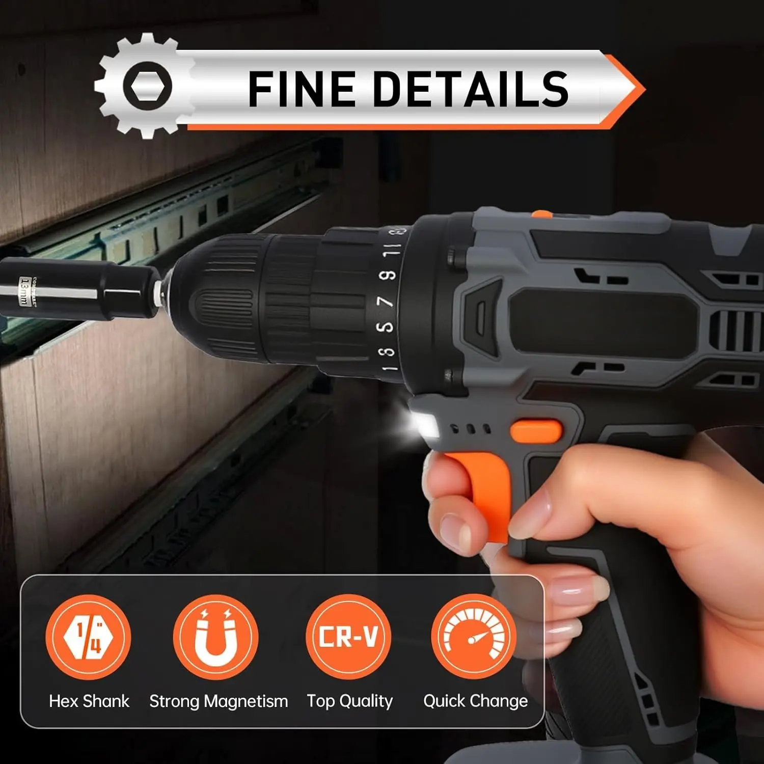 Retention System: Neodymium securely grip and nuts, even in high-vibration environments, minimizing hardware loss during overhead or confined space operations. Built with Cr-V steel for durability and S2 alloy steel bits for hardness, featuring anti-slip design to reduce replacements. Trusted by mechanics and DIYers.