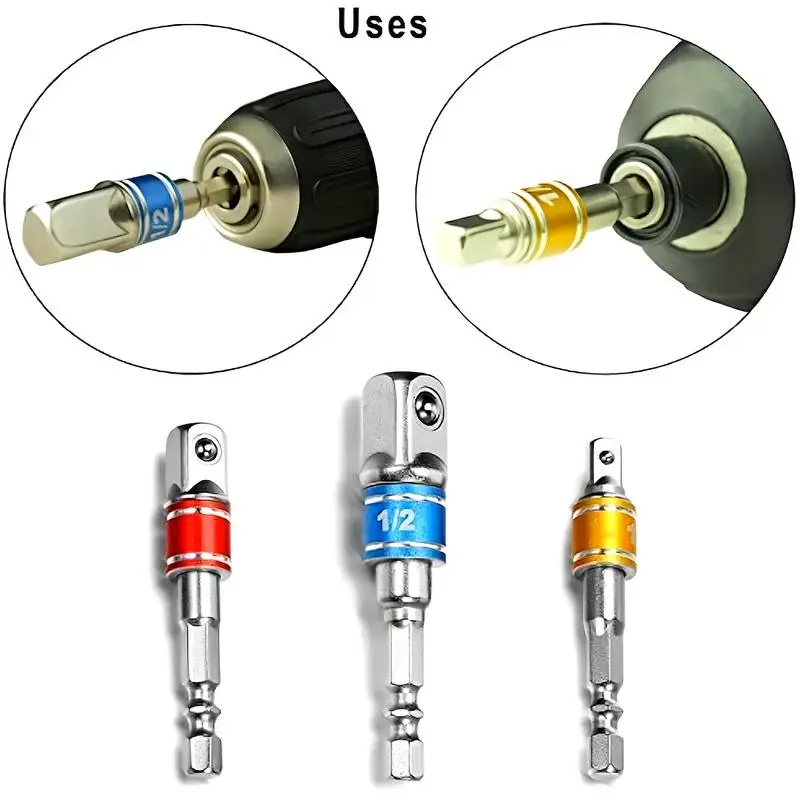 Impact Socket Adapter Set, 1/4" 3/8" 1/2" Hex Shank Socket Adapter, Durable Alloy Construction Heavy Duty Socket Adapter Set for Square Power Drill
