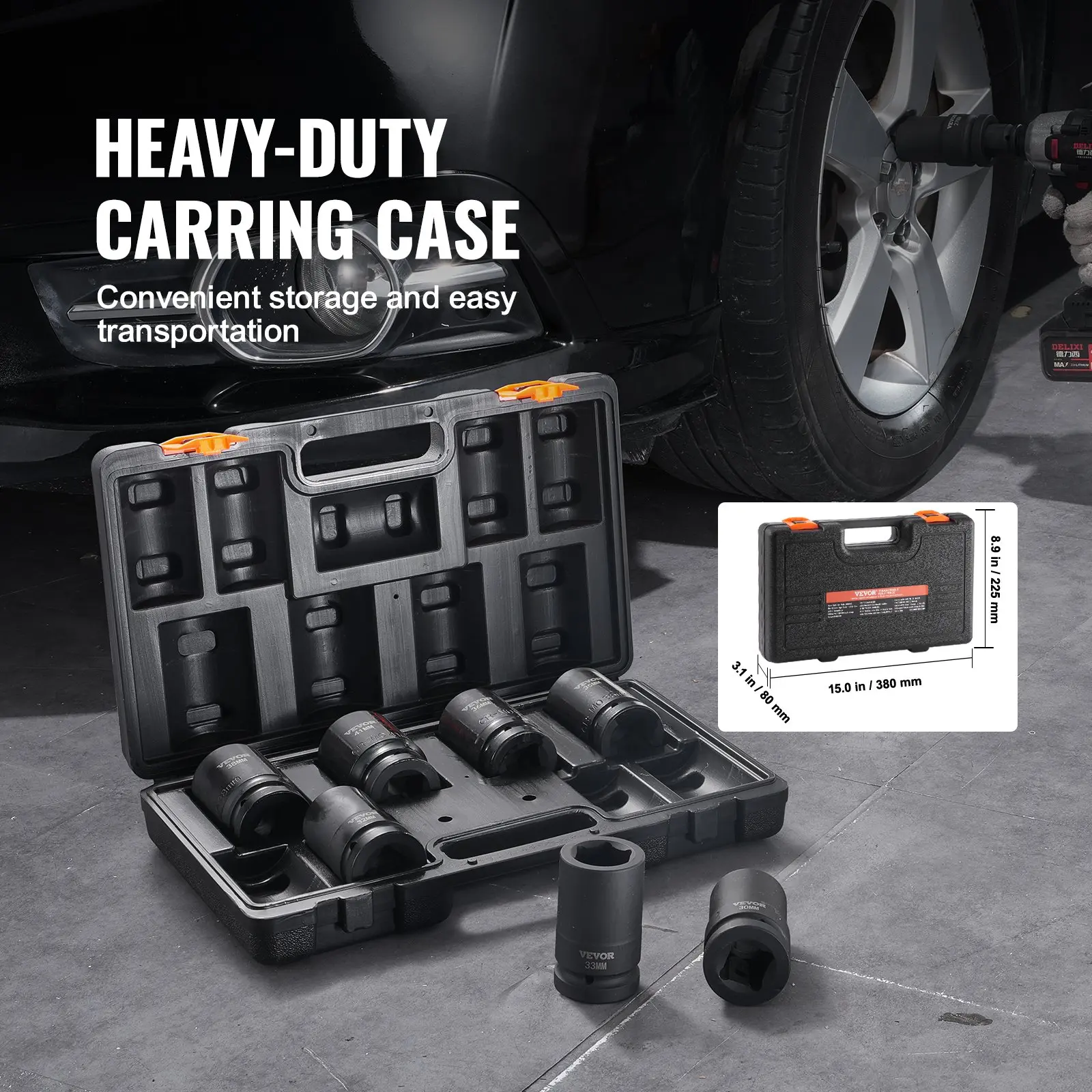 5. VEVOR 1" Drive Impact Sockets Set, 8pcs CR-MO Metric Deep (27-41 mm), 6-Point Drive Bit Ratchet Tool Kit Case