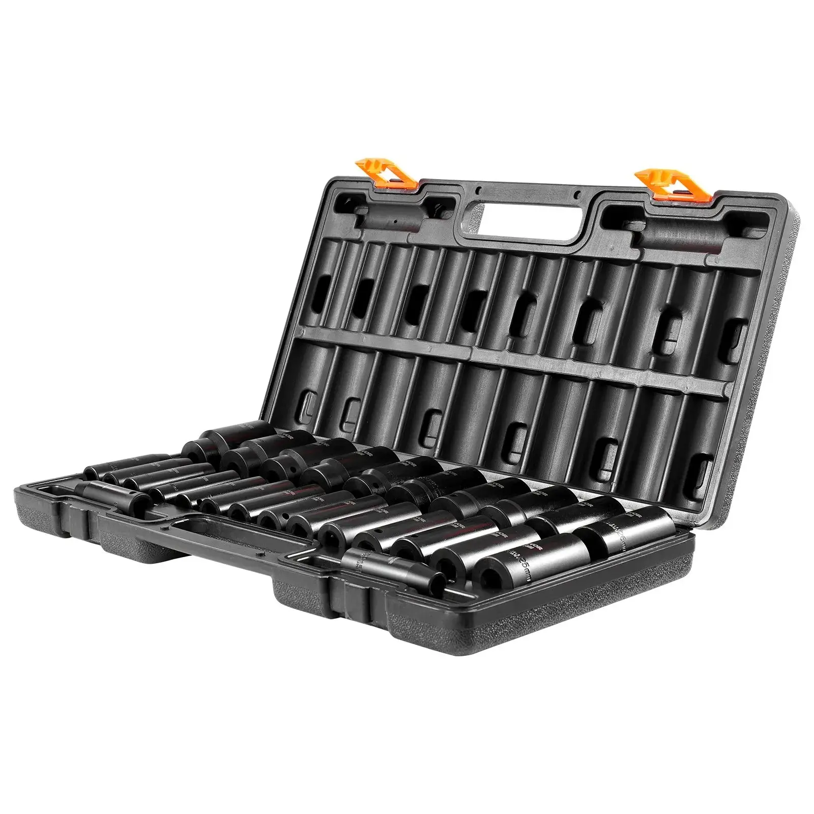 ·【26 SOCKETS INCLUDED】- This effort-saving 1/2 inches drive impact socket set comes with 26 deep impact drive sockets: 10mm, 11mm, 12mm, 13mm, 14mm, 15mm, 16mm, 17mm, 18mm, 19mm, 20mm, 21mm, 22mm, 23mm, 24mm, 25mm, 26mm, 27mm, 28mm, 29mm, 30mm, 32mm, 33mm, 34mm, 35mm, 36mm.