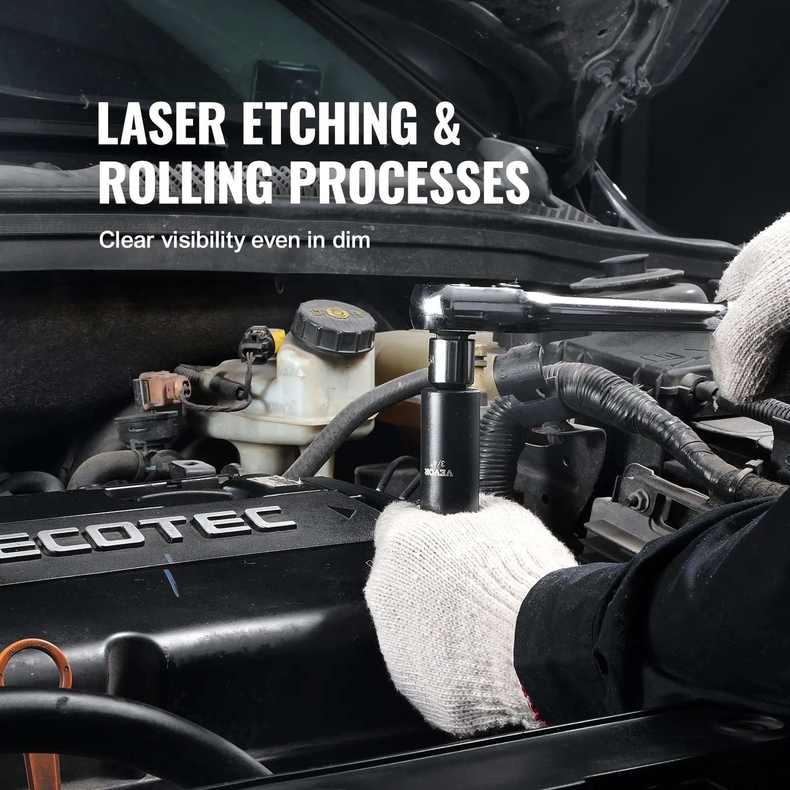 ·CR-V Industrial-Grade Alloy Steel: Crafted from premium impact-grade alloy steel, our 3/8" impact socket set with CR-V industrial-grade alloy steel offers exceptional enhancements in impact resistance and absorption. Through the utilization of vacuum heat treatment, the steel undergoes rapid heating and cooling processes, resulting in a polished and highly durable surface. This makes it well-suited for a wide range of operational environments.