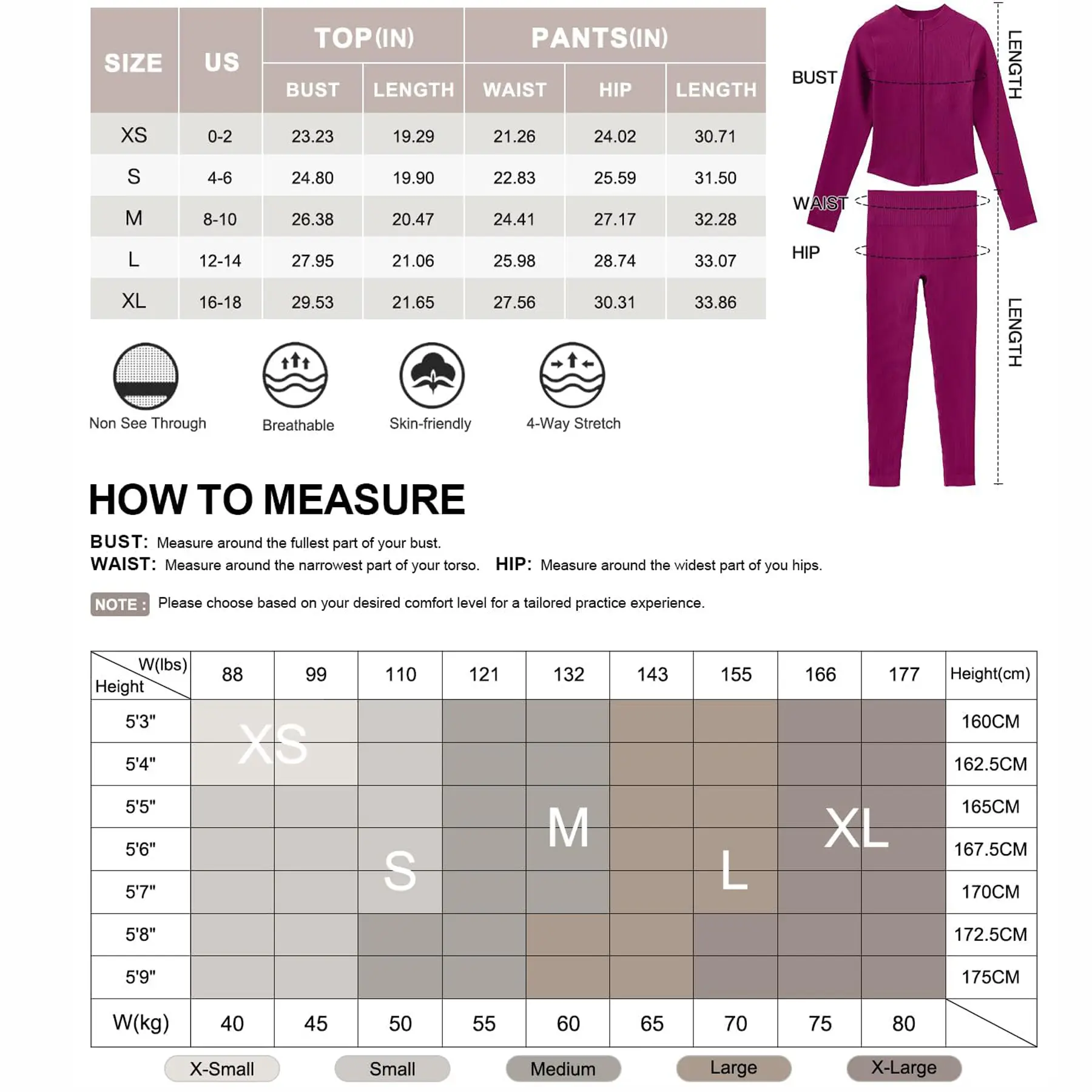 ABSOLUTELY LOVE THIS SET!!! Super comfortable, breathable, soft, and stretchy and NOT SEE THROUGH delivery was also amazing came almost a week earlier then expected date DEF RECOMMEND and will 100% be getting more got a size small i’m 5’4 119lbs and it fits PERFECT