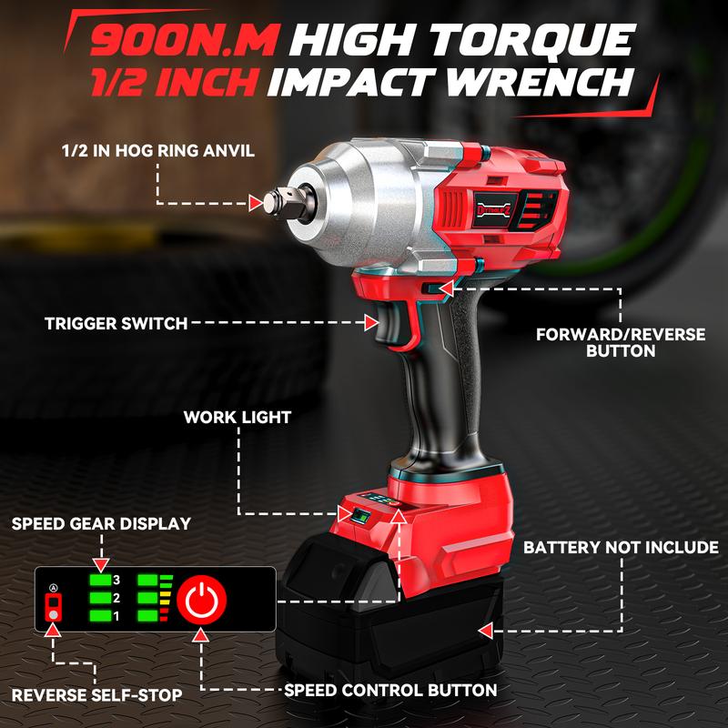 ·[VERSATILE 1/2-INCH IMPACT WRENCH] -Our Impact Gun also functions as an impact driller and screwdriver with universal 1/2" hog ring compatibility, Seamlessly switch between sockets and accessories without interrupting your workflow. No more tool-swapping hassles—just pure efficiency and convenience.