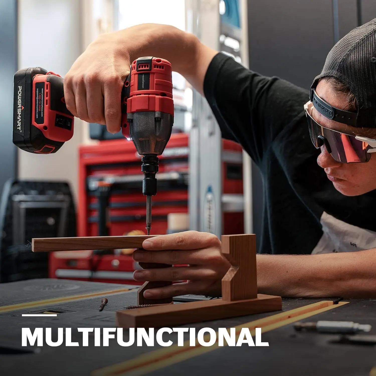 PowerSmart Brushless Cordless Impact Wrench 1/2 In. with Friction Ring, 2.0Ah 20V Battery and Fast Charger, Tool Bag/Sockets Set Included(PS76142B) Rechargeable Lithium Drill