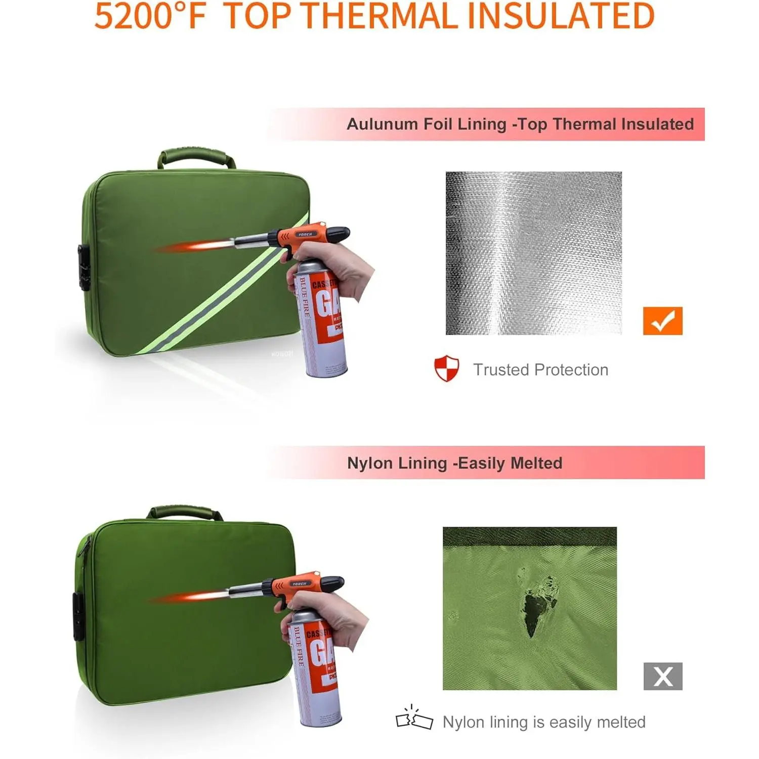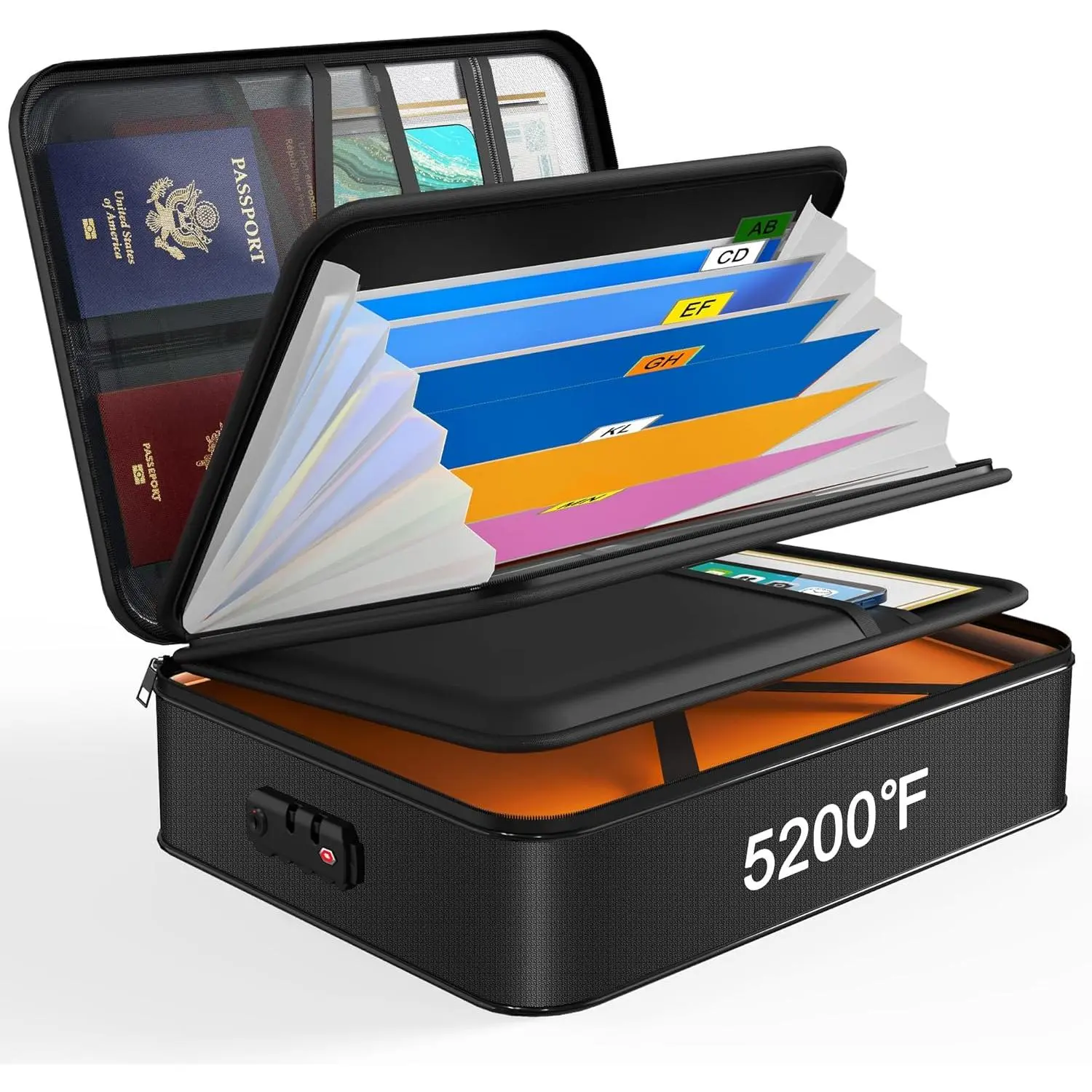 Foil Lining for Fireproof Protection: important document holder is made of coated material and foil which withstand the temperature up to 5200℉ . foil lining isn’t easily melt under high temperature after several tests .Fireproof document organizer offers your valuables the double safe protection. reflective strip design, even at night, you can find your fire document storage immediately. The reflective strip point is your right direction