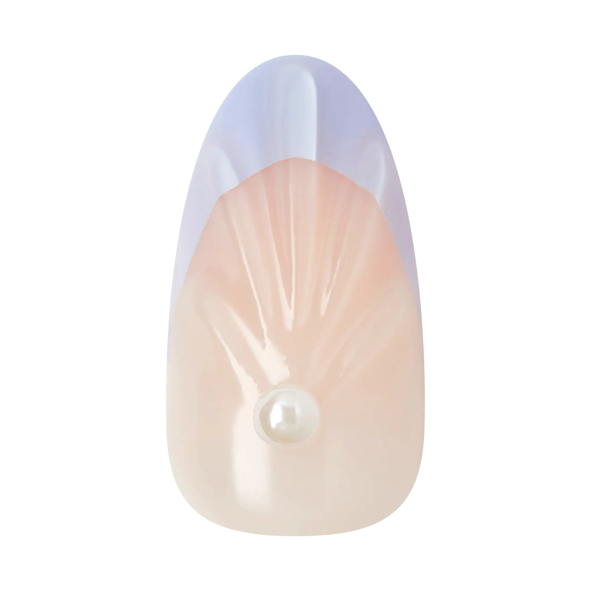 Spring-soft purple French tips with a nude base meet pearly accents and seashell textures for a breezy, sunrise-inspired look. This elegant mani blends subtle color with artisanal details for a fresh seasonal glow.