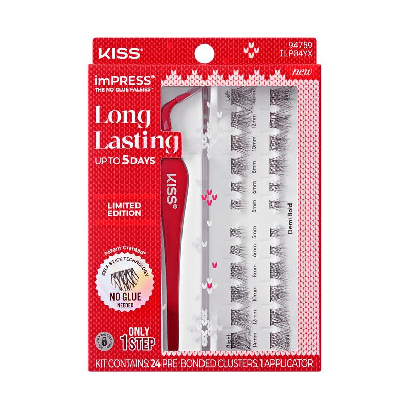 Add a touch of holiday magic to your lash game. imPRESS NO GLUE Press On Lashes are pre-bonded, waterproof, and reusable—lasting up to 5 days of wintry fun, festive moments, and cozy celebrations under twinkling lights.