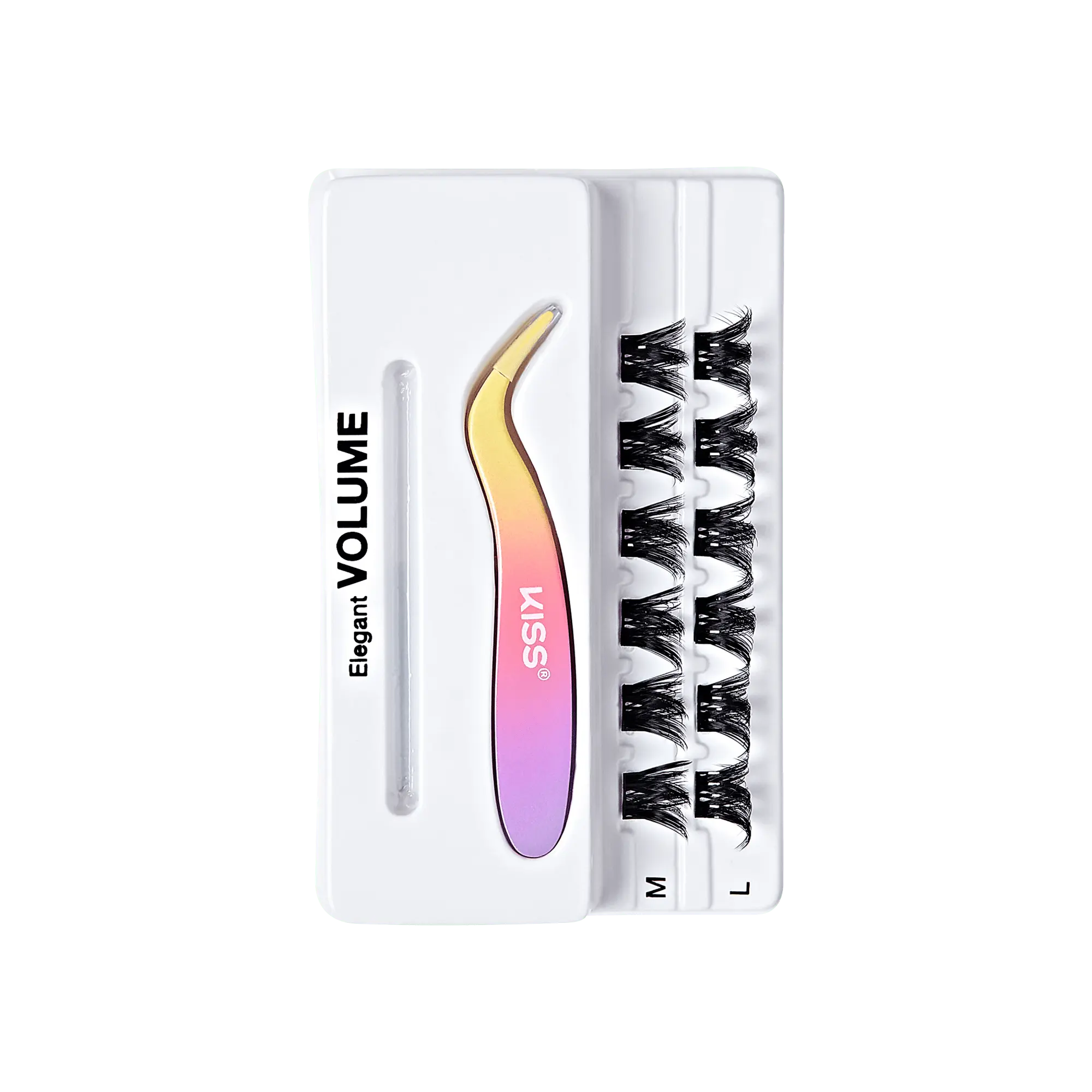 ·12 Clusters of 12mm-14mm Glam volume lashes; Available in 3 Styles: Natural, Voluminous and Wispy, each with 4 new varieties to mix and match any way you like; also includes ergonomically designed precision Applicator