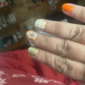 ABSOLUTELY love my nails. Right now I have the fall nails on but the day after thanksgiving my Christmas nails are going on.