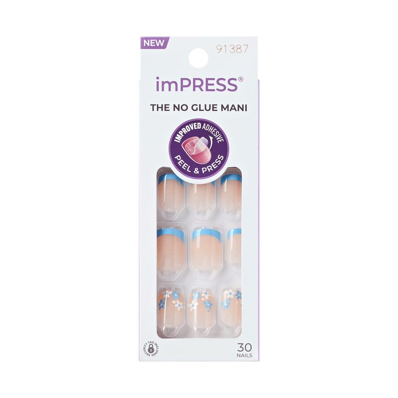 Fancy a new French NO GLUE Mani? Say “oui” to imPRESS Press On French Manicure. With our new improved adhesive, these press on nails are long-lasting with a secure hold that lasts for up to 10 days. Just peel, press & go!