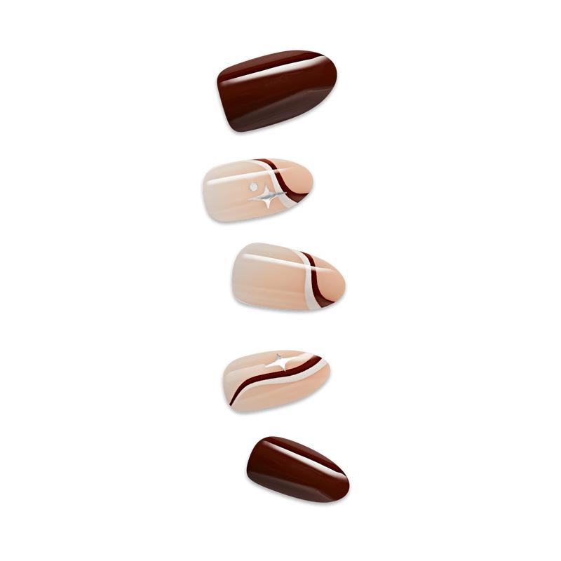 ·Brown Almond Press On Nails Medium 30 Fake Nails