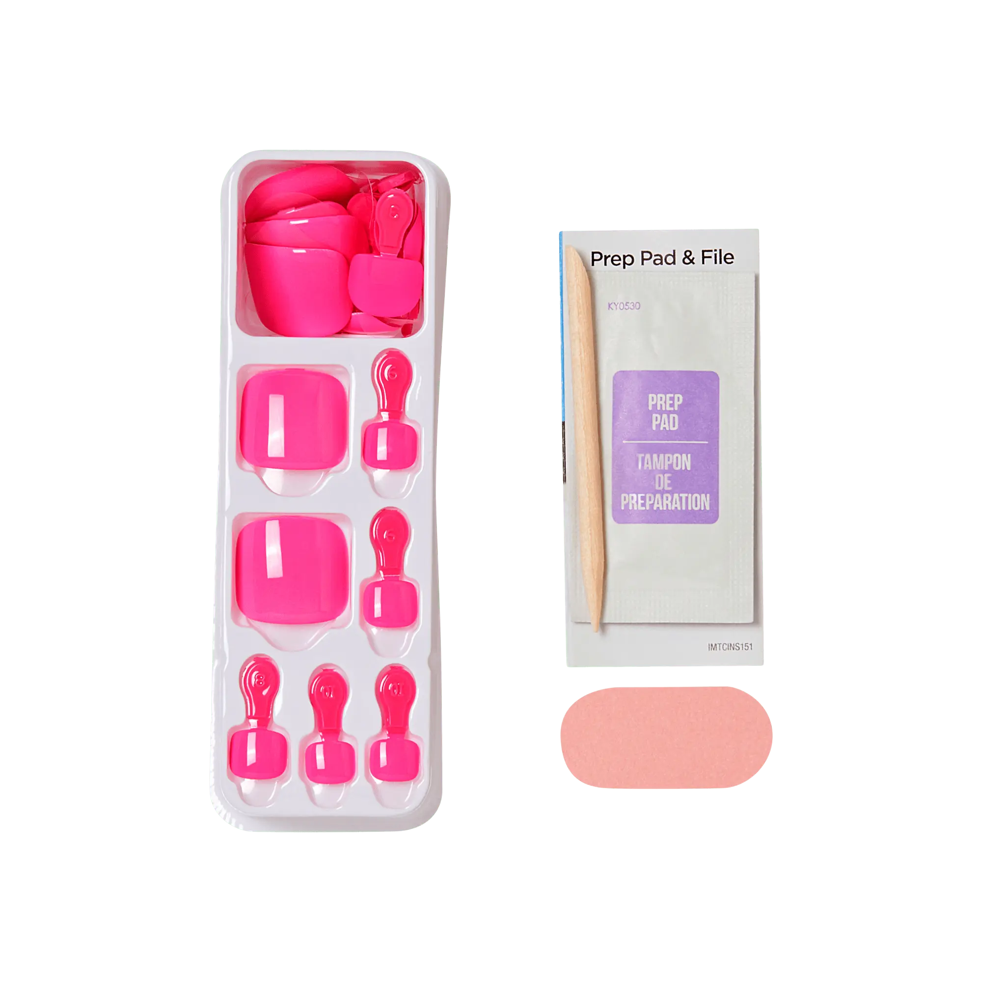 ·Pedicure kit contains 24 press on toenails, prep pad, mini nail file, and pedicure stick