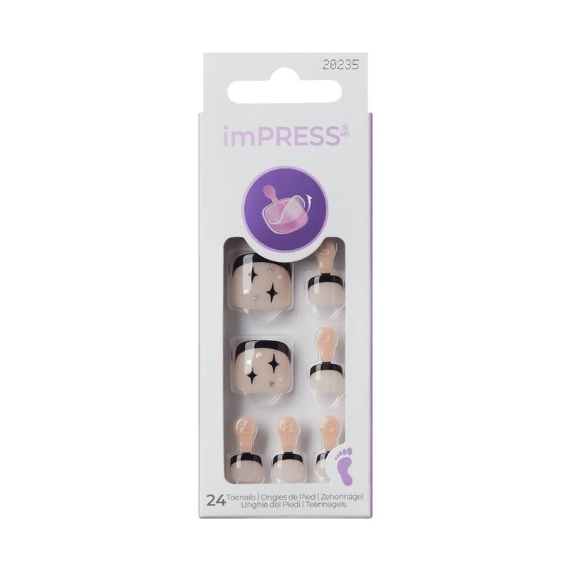 Travel in style with imPRESS NO GLUE Pedicure, your ultimate beauty-on-the-go essential! These ready-to-wear toenails are designed for effortless glam anywhere. Complete the look with matching imPRESS Press-On Nails.