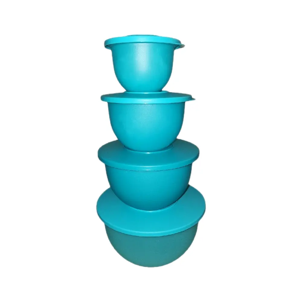 This Impression 4pc Bowl Set includes bowls of varying sizes: 4.3L, 2.5L, 1.3L, and 500ml. Ideal for cooking and serving, this set is stackable for convenient storage. 🍽️