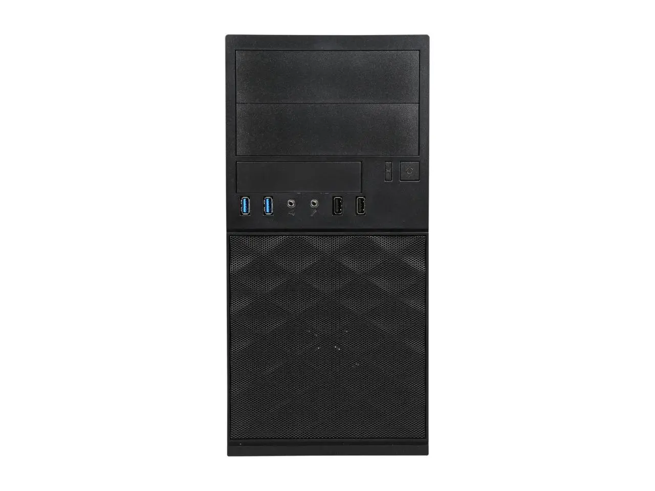 Mini Tower Chassis Supports up to 7 drive bays, one-touch removal side panel, tool-free design for ODD/FDD/HDD and PCI-E slots, vastly increasing the ease of assembly!Motherboard Supported: Micro ATXNumber of Fans Supported: 2Number of External 5.25 Bays: 2Number of External 3.5" Bays: 1Number of Internal 3.5" Bays: 3Number of Internal 2.5" Bays: 1Number of Total Expansion Bays: 7Number of Total Expansion Slots: 4Total Number of USB Ports: 2Total Number of Audio In Ports: 1Total Number of Audio Out Ports: 1Power Supply Installed: YesNumber of Power Supplies Supported: 1Number of Power Supplies Installed: 1Power Supply Wattage: 450 WColor: BlackForm Factor: Mini-towerHeight: 13.8"Width: 6.7"Depth: 14.1"Green Compliant: YesGreen Compliance Certificate/Authority: RoHSGreen Compliance Certificate/Authority: ErP"
