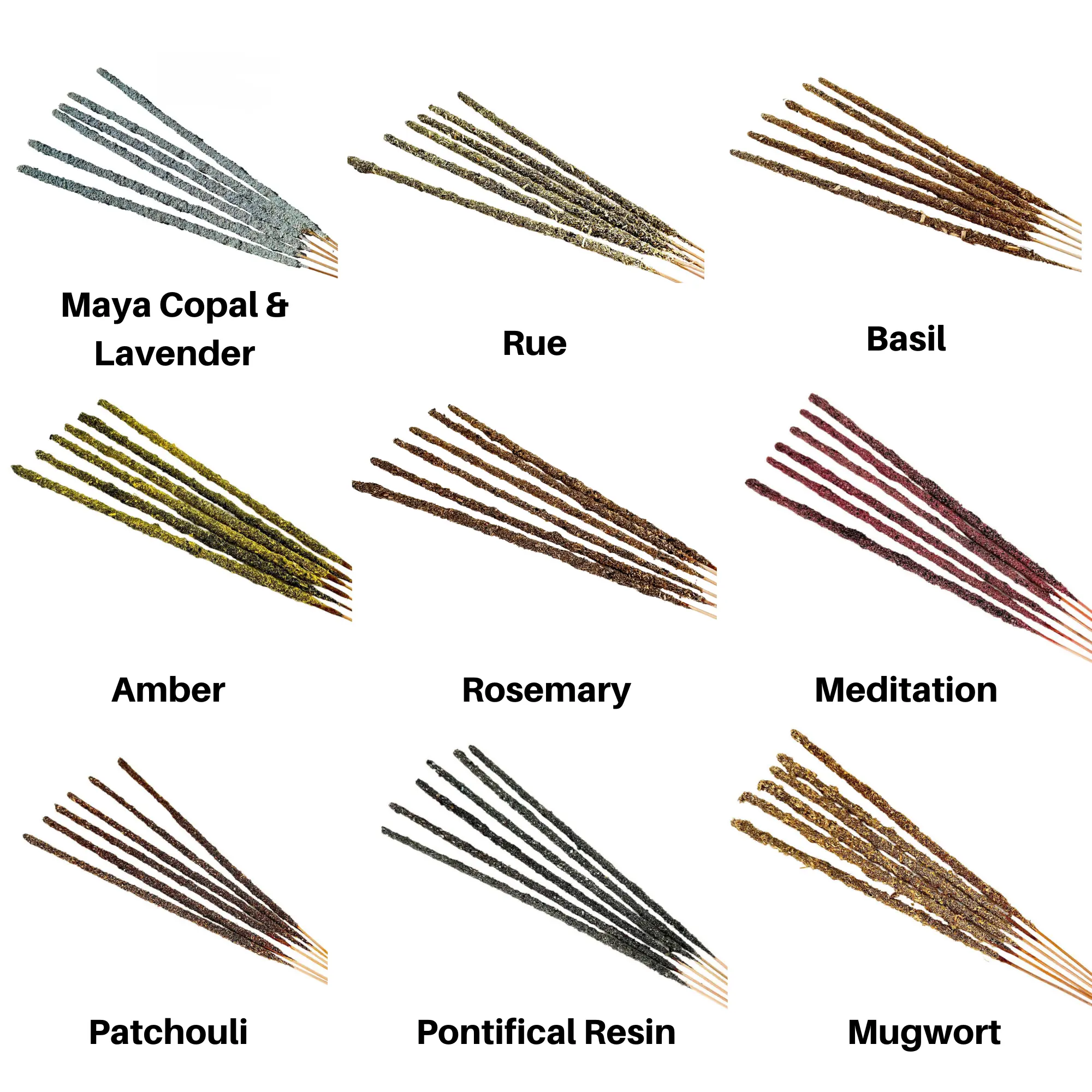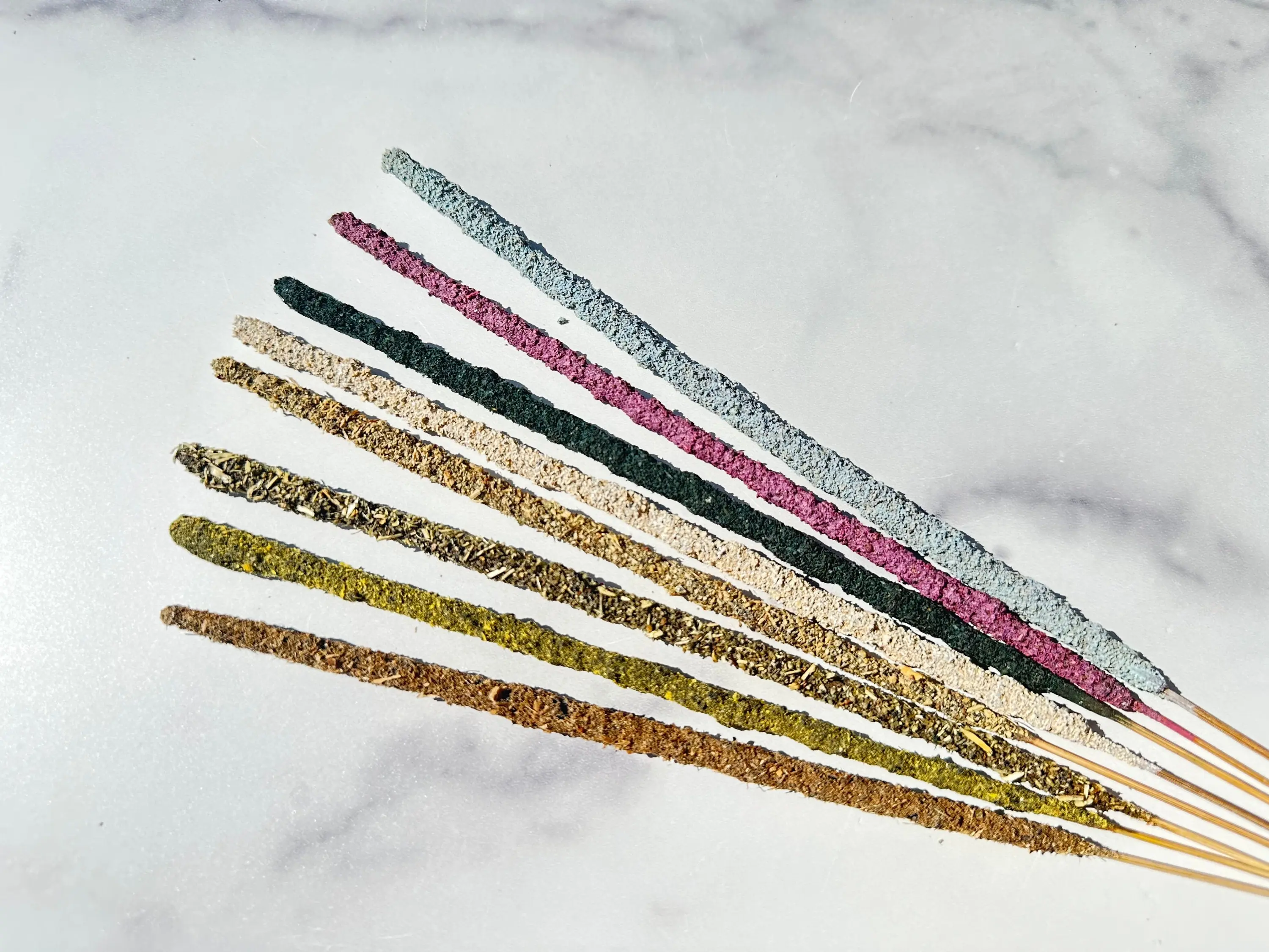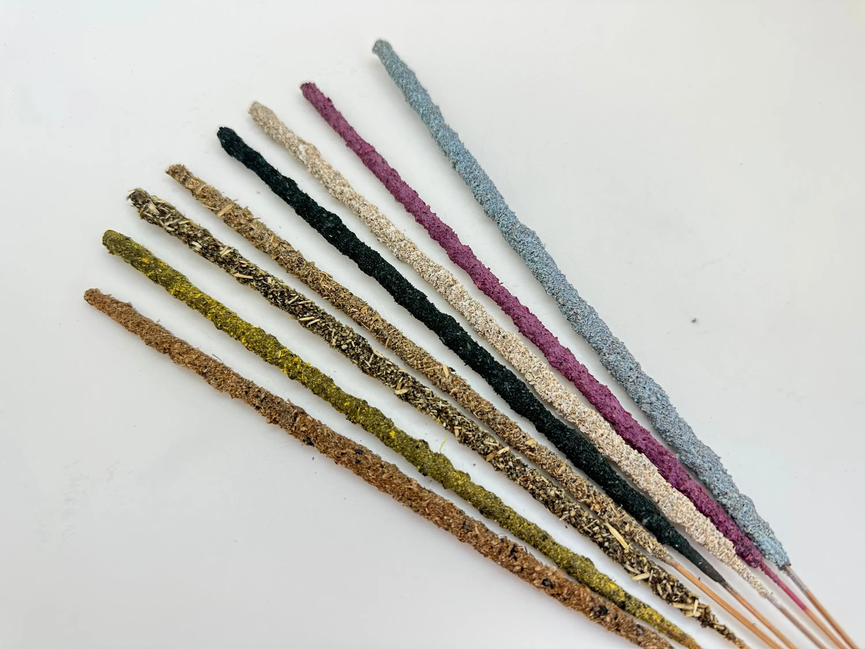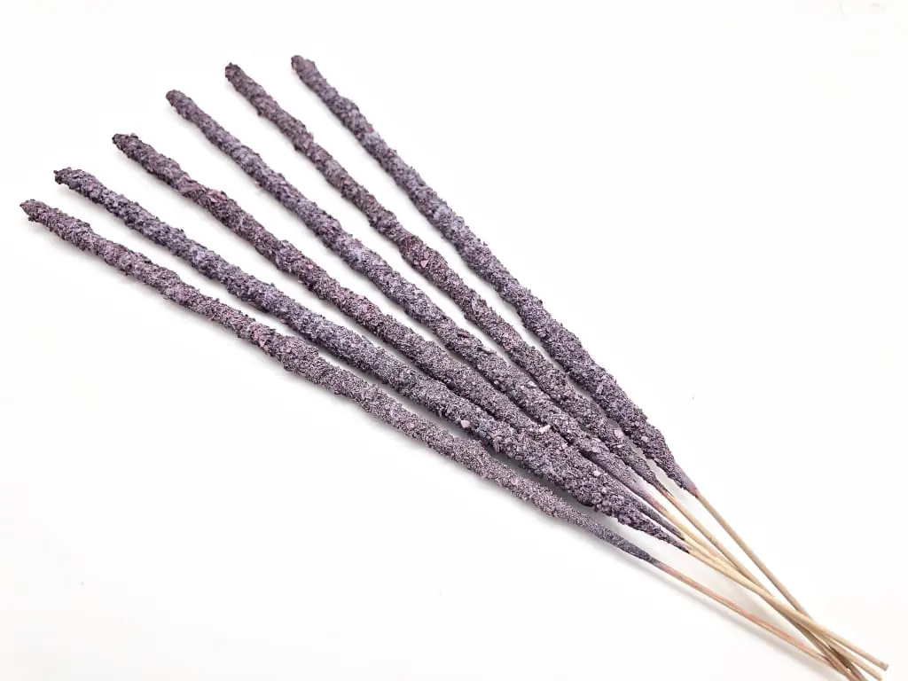 Ingredients: Each incense stick is made of wood covered with natural resin, then rolled in natural herbs.