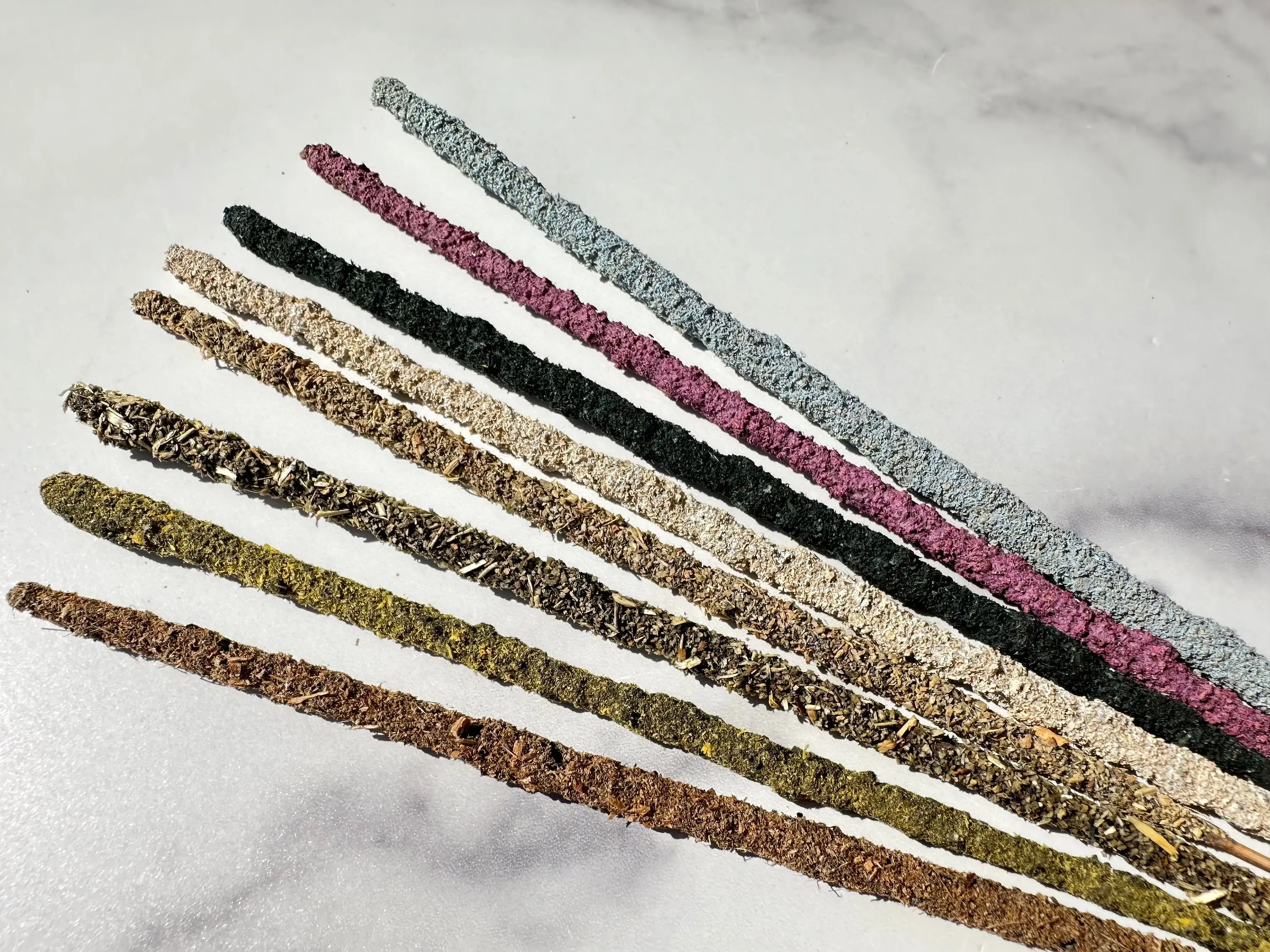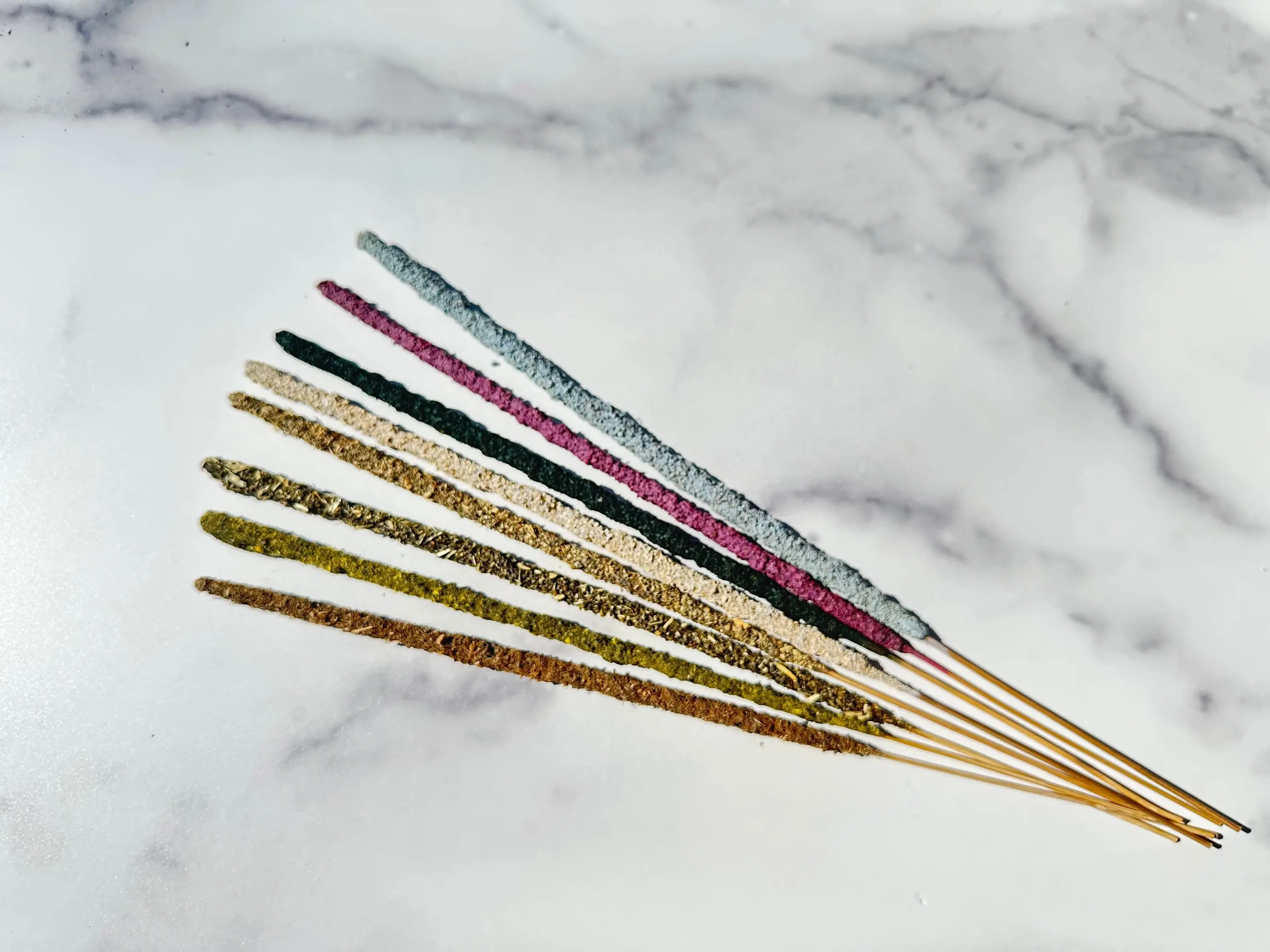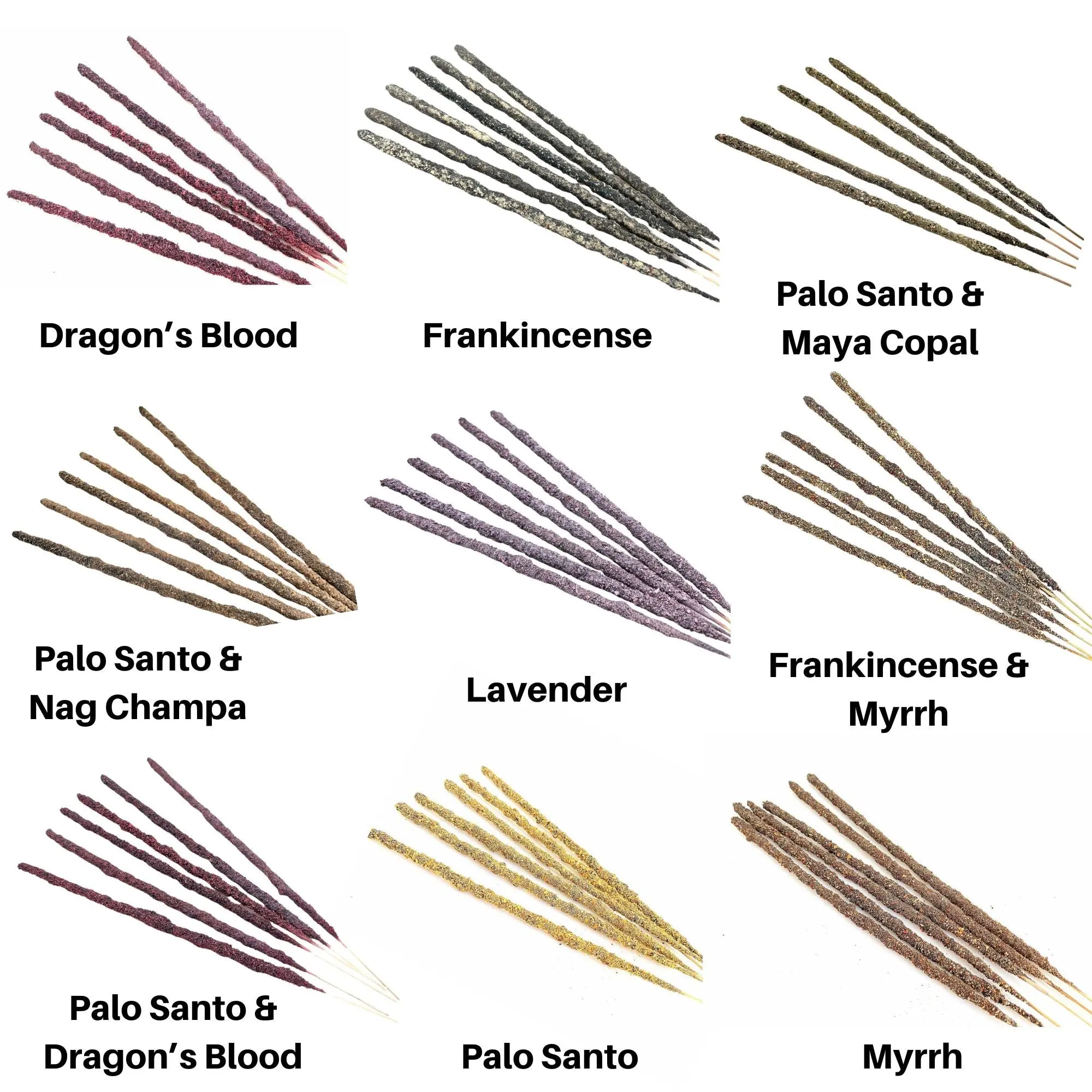 Ingredients: Each incense stick is made of wood covered with natural resin, then rolled in natural herbs.