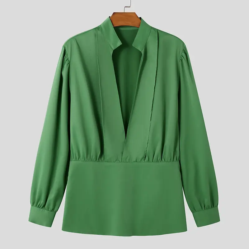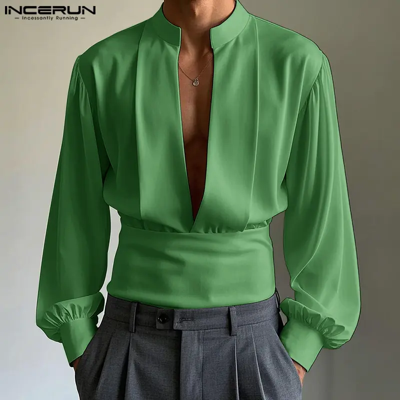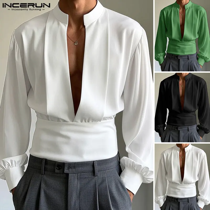 5. INCERUN Men's Deep V-Neck French Elegance Solid Shirt | Avant-Garde Fashion Statement