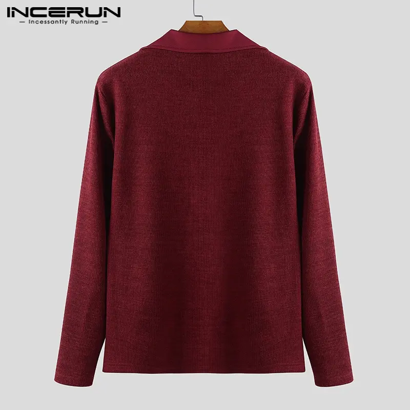 INCERUN Men's Fall/Winter Fashion Faux Two-Piece Lapel Slim Fit Knit Shirt