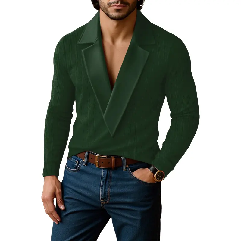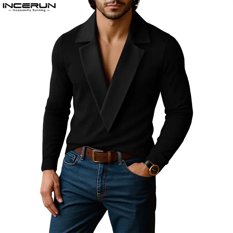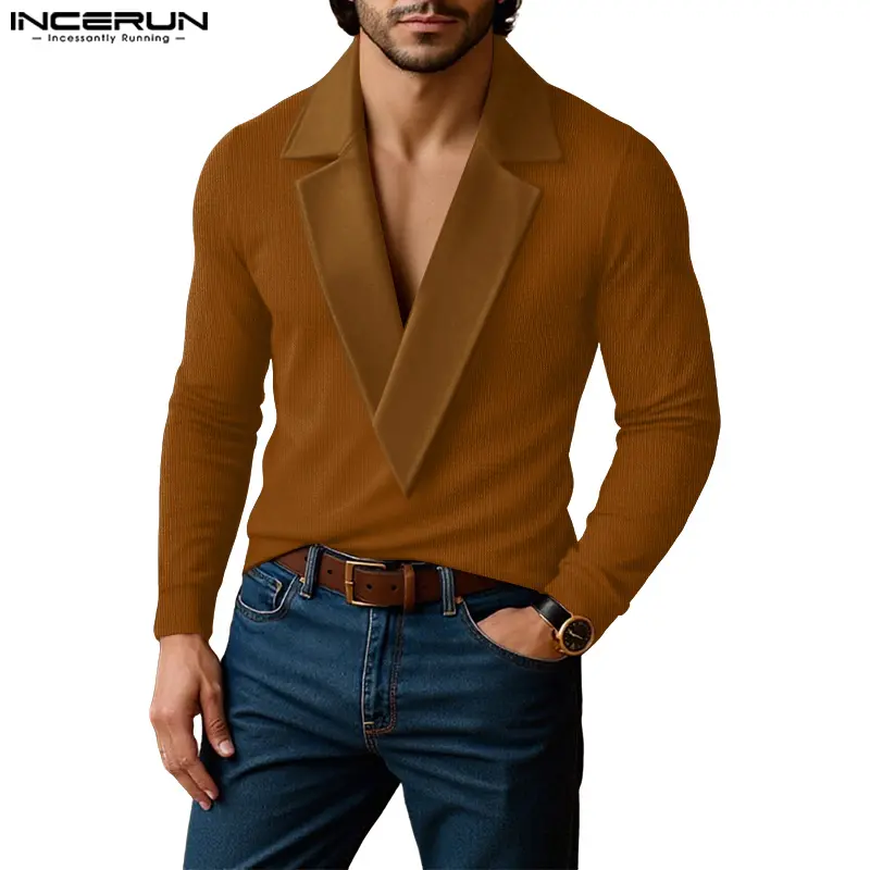Unique Design: INCERUN's knit shirt features a lapel V-neck design. The bold V-neck reveals the masculine collarbone line, creating a visual contrast with the faux two-piece lapel. This design breaks traditional monotony, offering a stylish and modern look.
