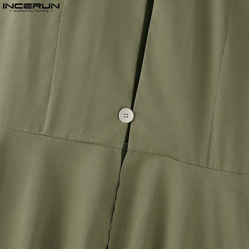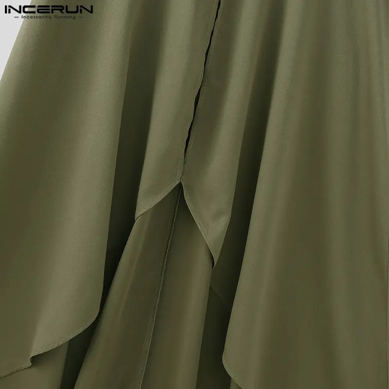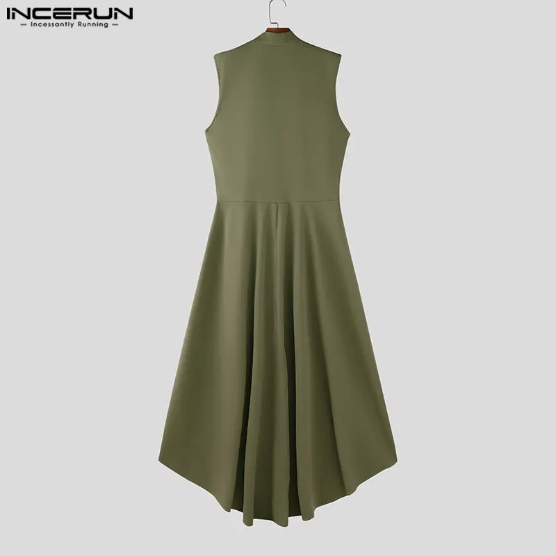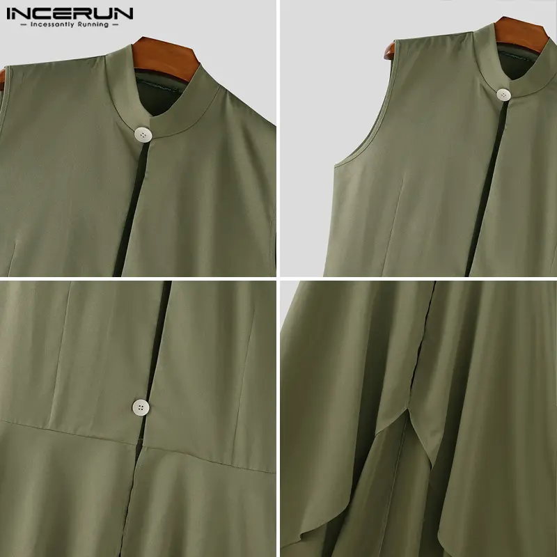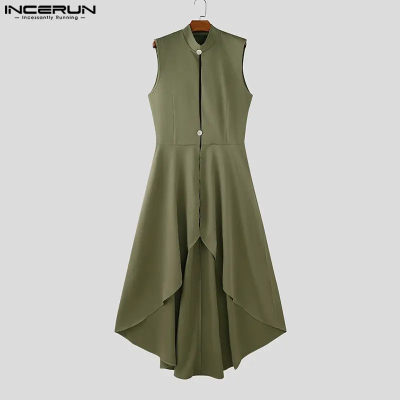 INCERUN Men's Deconstructed Long Solid Vest - Stand Collar & Flounced Hem. Avant-garde yet wearable for elevated daily style