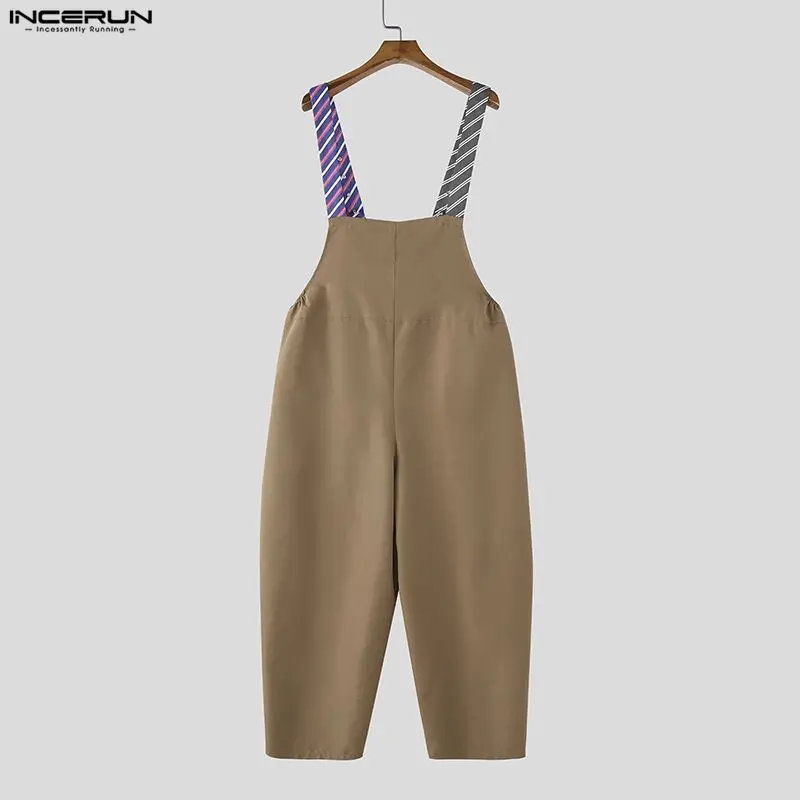 INCERUN Men's Vintage Overalls Artsy Suspender Pants Campus Life Retro Wide Leg Trousers SpringStatements Classic Jumpsuits Overalls