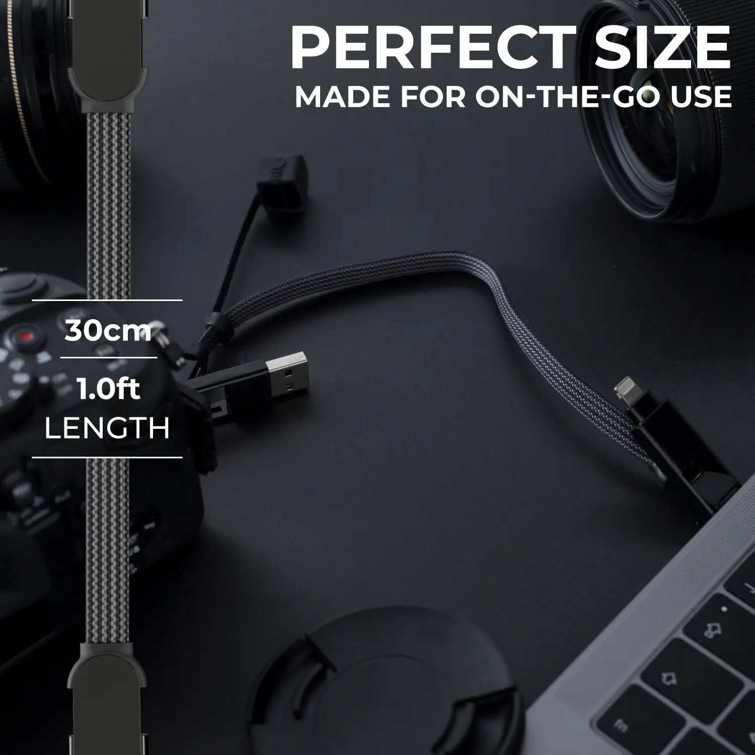 Alright, so we've established that this is not the length it says it is, but. . . other than that, this is one fantastic cable. I do with it had included a pouch, as the metal is going to scratch any devices you have if stored together, but in terms of functionality this really is the business. Currently I have the Lightning end charging my microUSB Logitech mouse, which is genius. You do need to make sure for the microUSB charging that you plug it in the right way (yes, it's not like USB C). However, the easiest way to remember which way to plug in is that the top (narrower end) is on the same side of the cable as the rubber cap that you take off to use it. Overall, this is a great cable, but the length description plus lack of little sleeve docks it one star. 4 out of 5.
