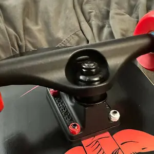 The flat black on these is legit, nice and thick! The red bushings are a little soft for my liking and i tighten the crap out of these trucks. May change them to harder ones, that's just my taste. You may like them this way. Other than that i love'em! I have three sets total in black , different sizes for other set ups.