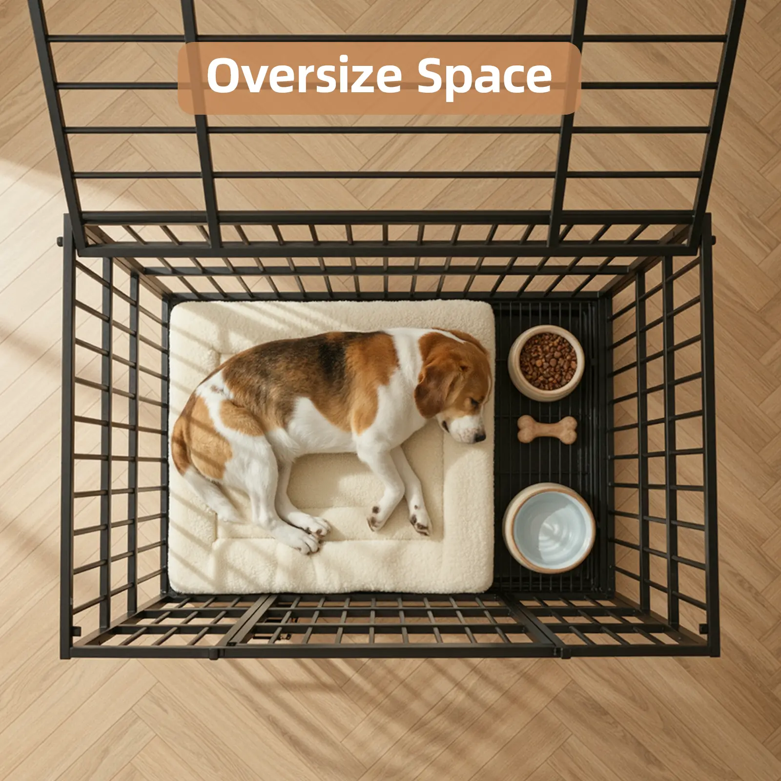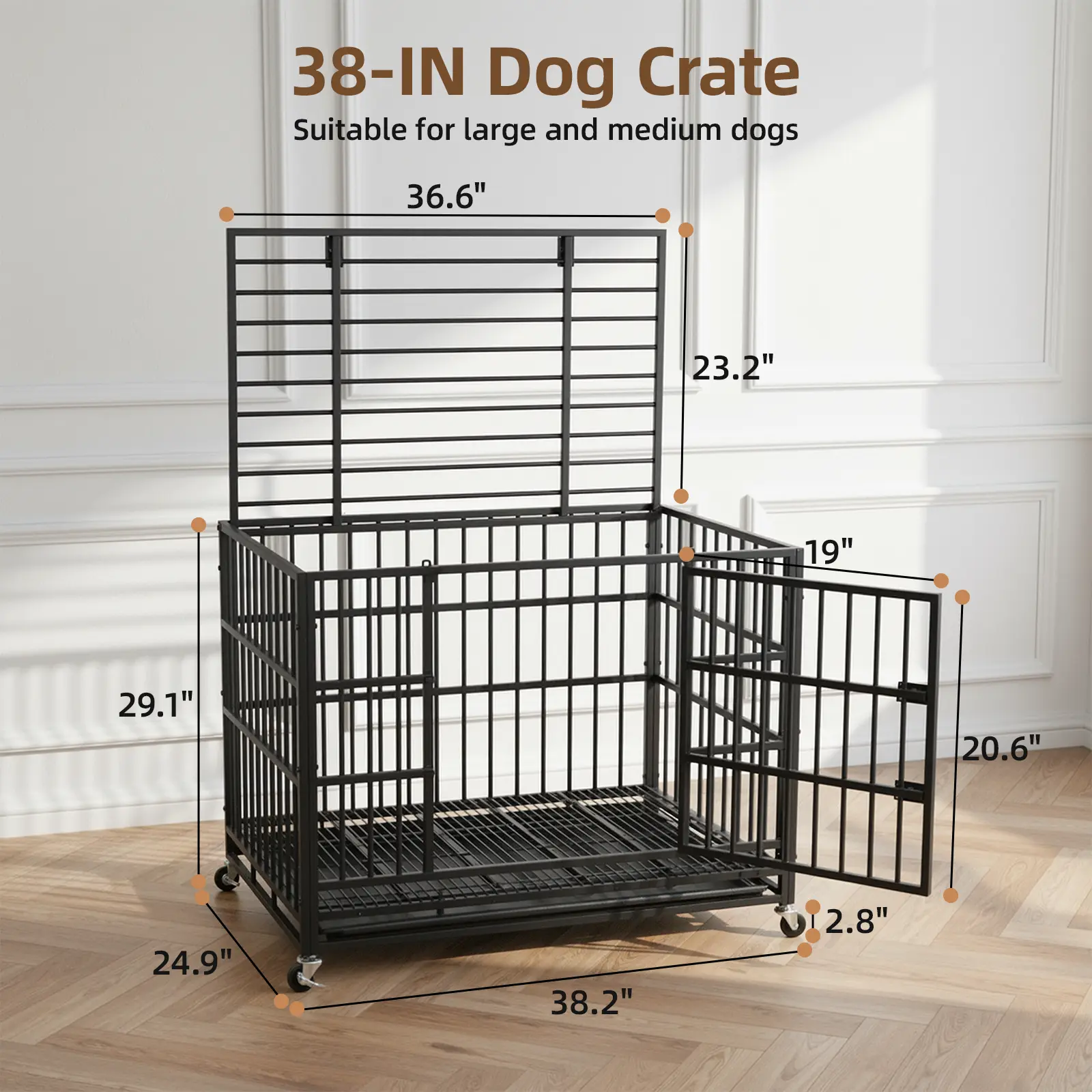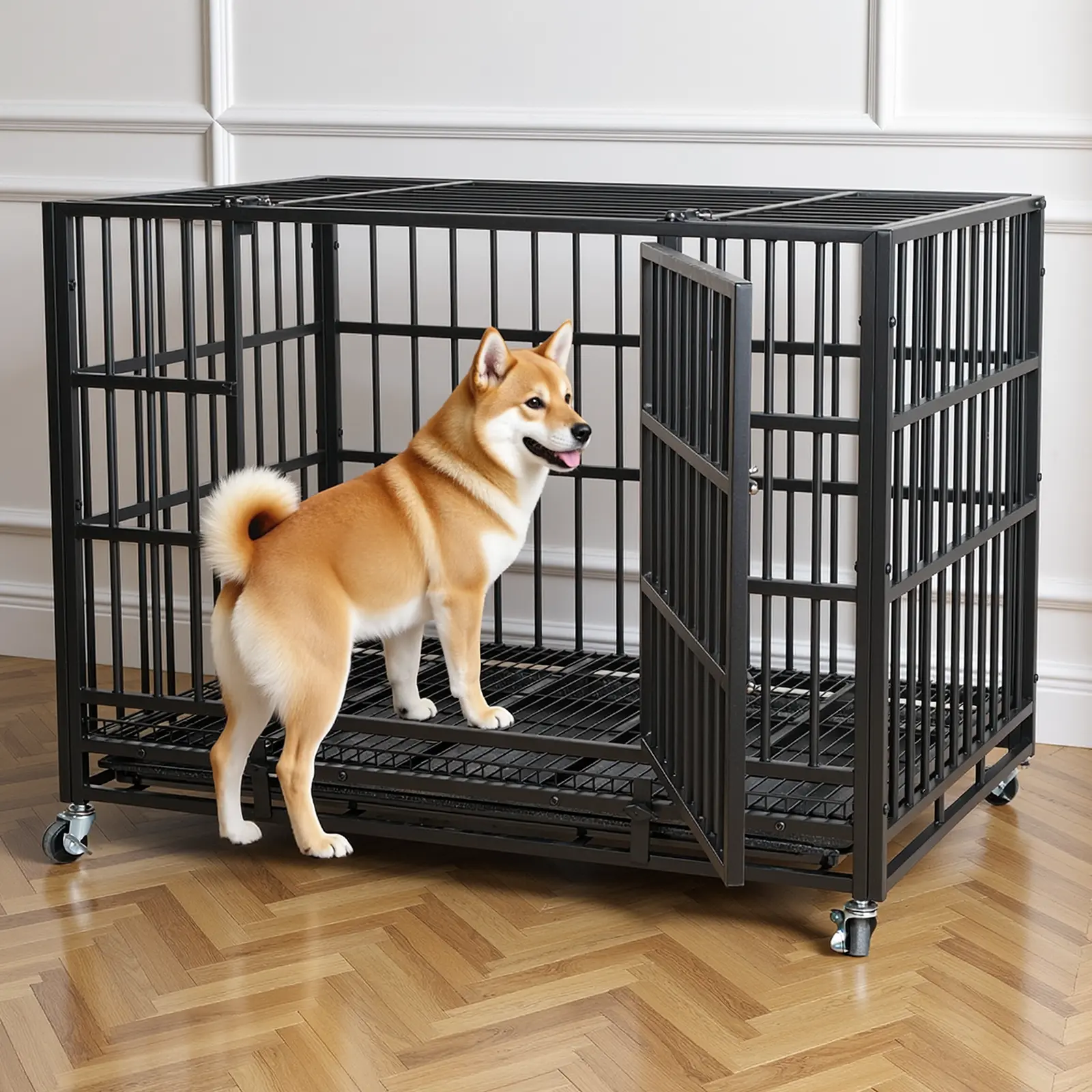 【Flexible Movement】: Come with four high-quality 360° rolling casters, this heavy duty dog kennel can move effortlessly to any place—easier than traditional dog cages. All wheels can be locked to prevent anxious dogs from escaping or harming themselves.