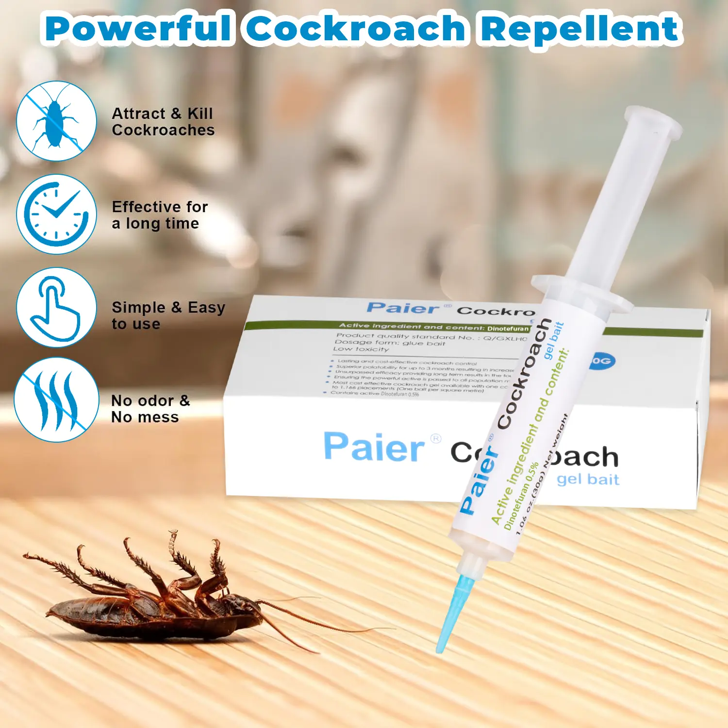 The product is not what you describe in your advertisement. It didn’t work at all. None of the coacroaches were dead.