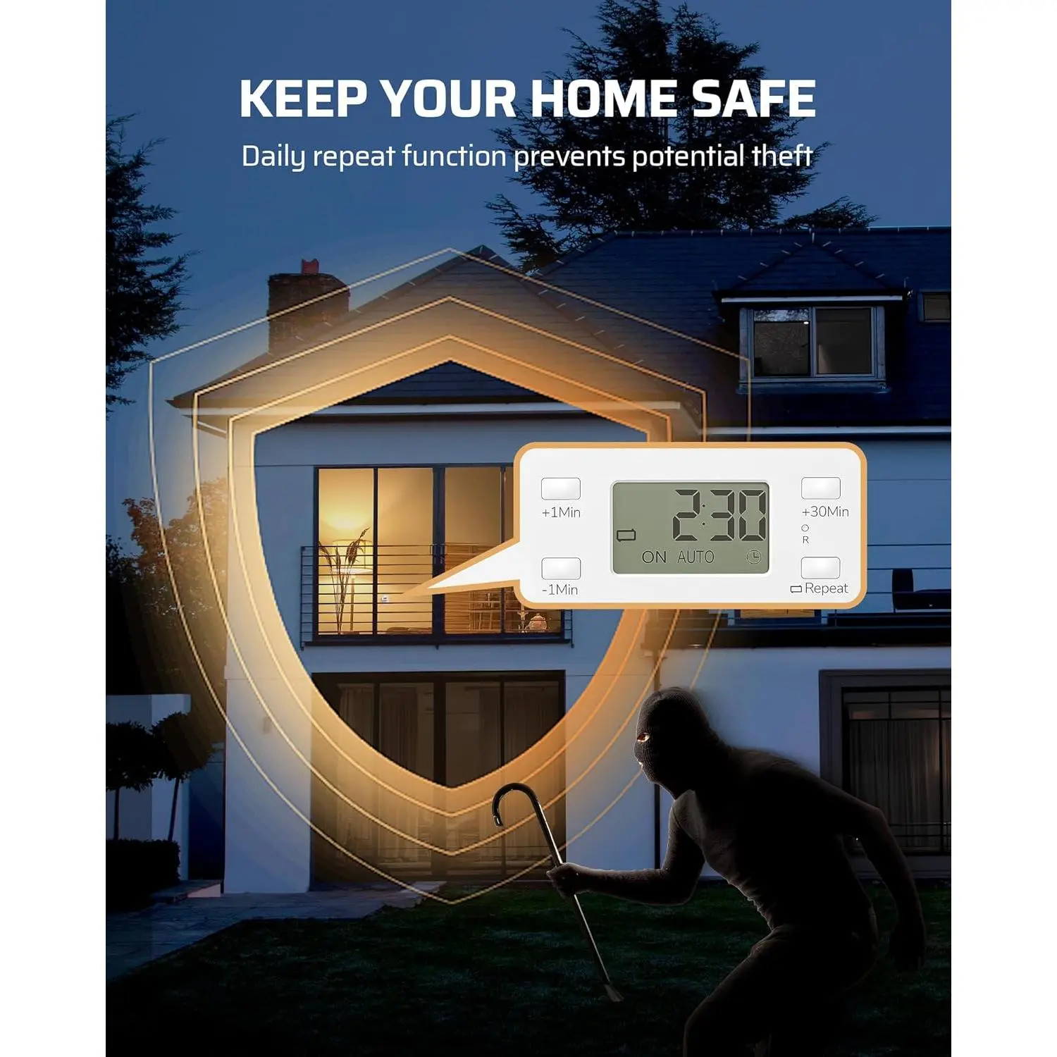 [REPEAT Mode] Automatically applies your settings daily at the same time until you deactivate it, ensures settings are not repeated multiple times within a single day, saving you from having to set it up repeatedly; helps make your appear occupied, deterring potential burglars