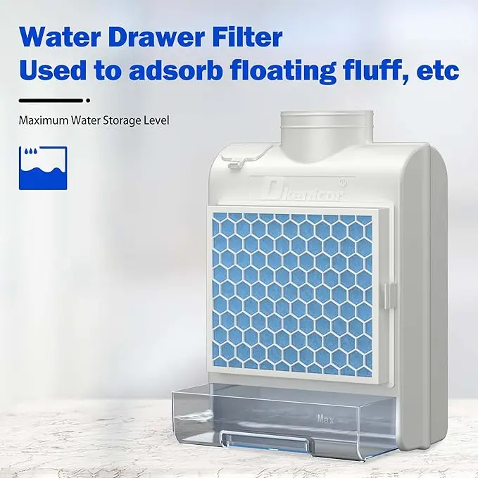 ·【WATER DRAWER SYSTEM】On the basis of filter, a water drawer system is added, which can be used to absorb cotton wool floating in the air and increase humidity in the room. You can add water and essence to the water drawer to fill the room with fragrance.