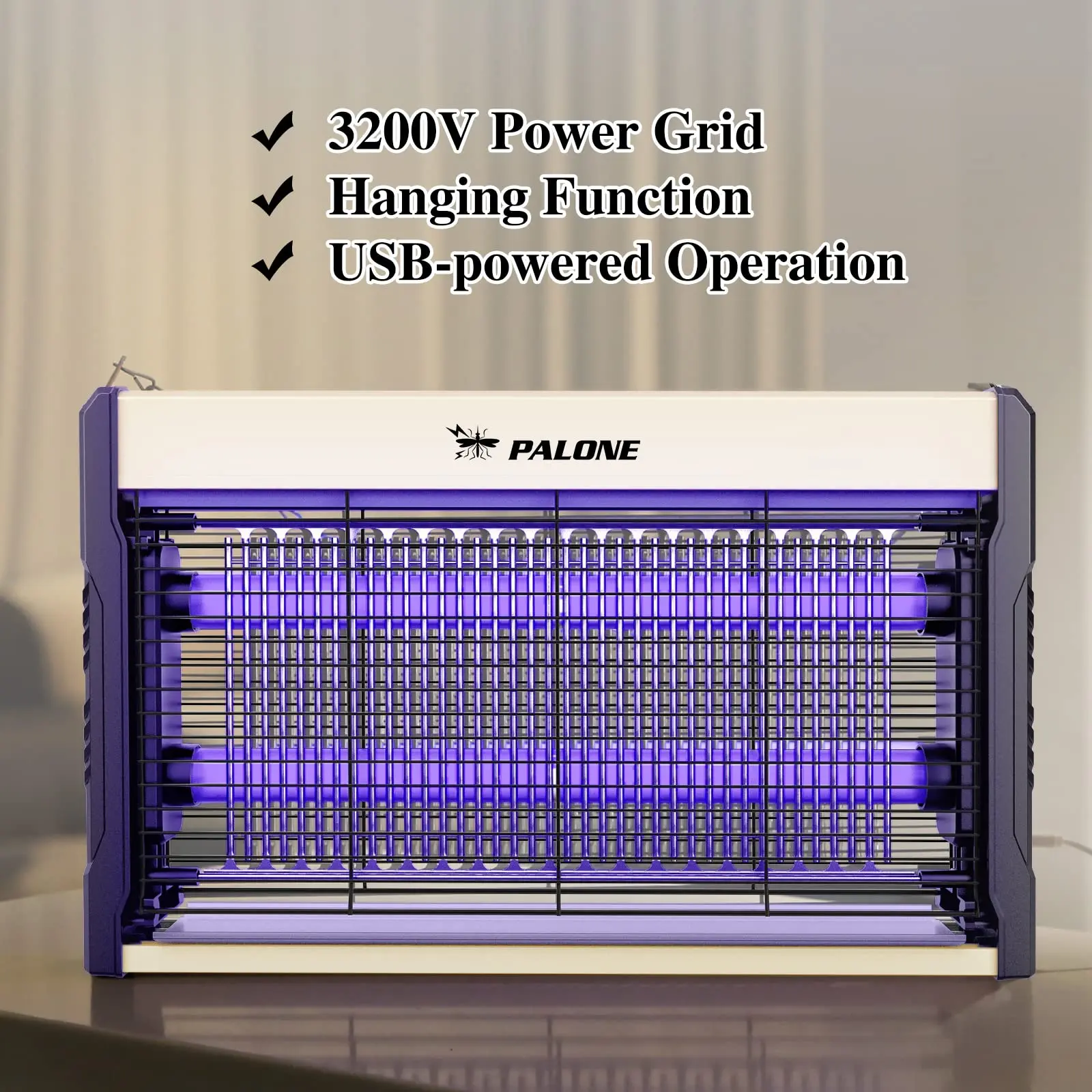 ·Easy to Use: Simply plug in the USB interface and start using. On the right side of the bug zapper are the power button and USB port. Additional USB cable of the bug zapper is white, about 59in/1.5m long. Note: Please place the mosquito trap on the flat surface. If you want to hang the bug zapper on the wall, please make sure the chain has been mounted.