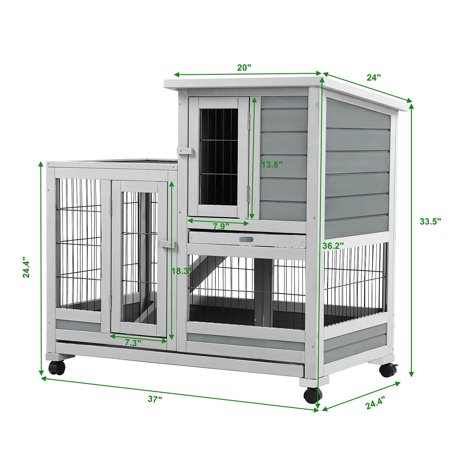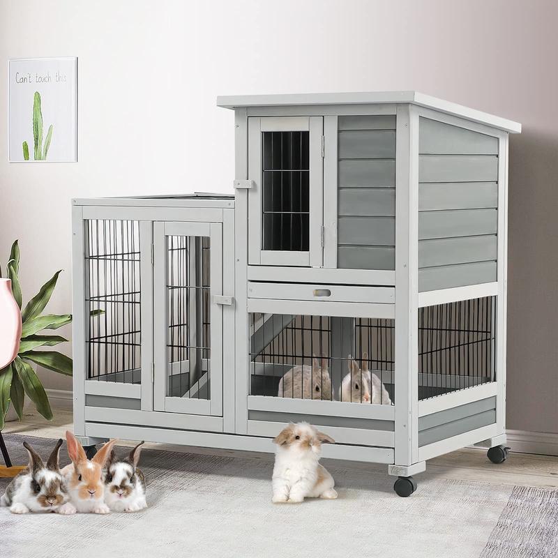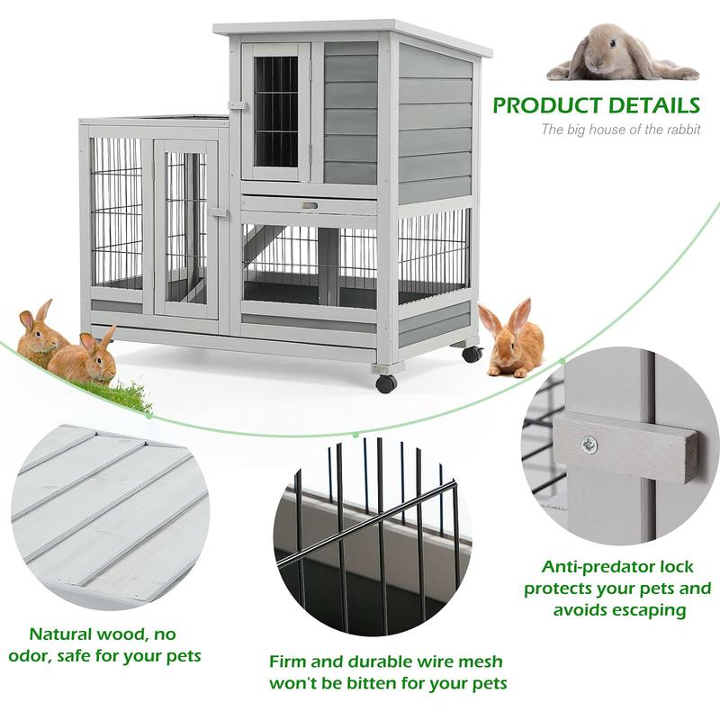 ·Spacious design: Hutch size of 37" (L) x 24.4" (W) x 36.2" (H), suitable for small breed rabbits and guinea pigs
