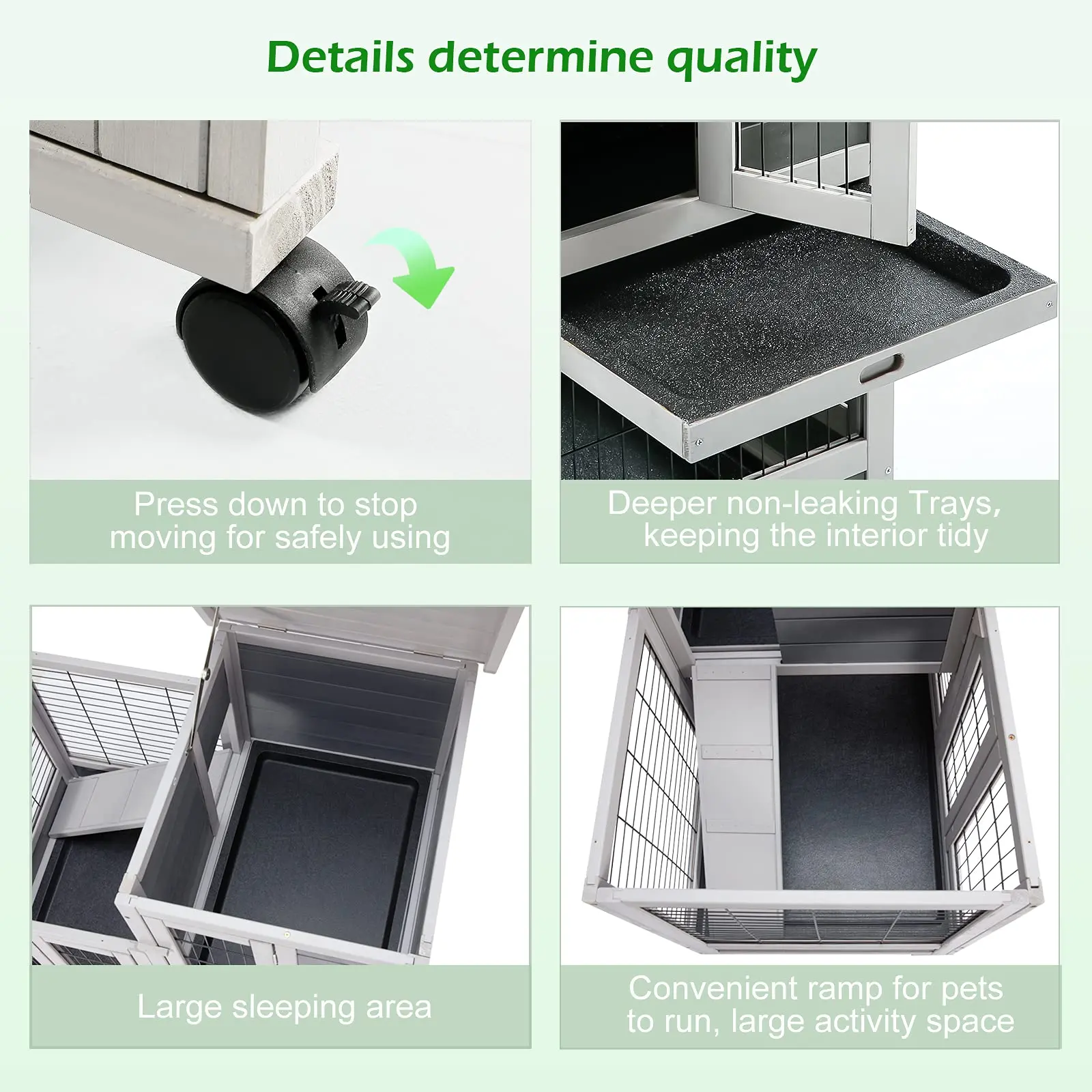 ·No leak trays: Rabbit hutch includes 2 deeper trays that won't leak, easy to clean, and made of quality plastic that won't rust