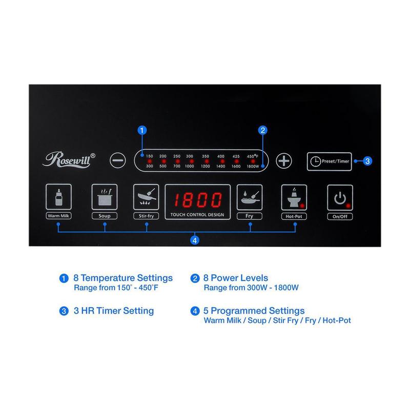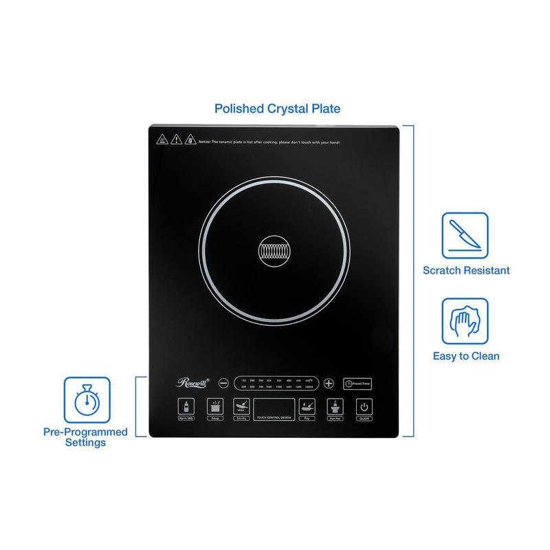 Rosewill RHAI-15001 Induction Cooker | Large Digital Screen Display | 1800 Watt | 5 Pre-Programmed Cooktop Settings | Stainless Steel Pot | 10" 3.5 QT
