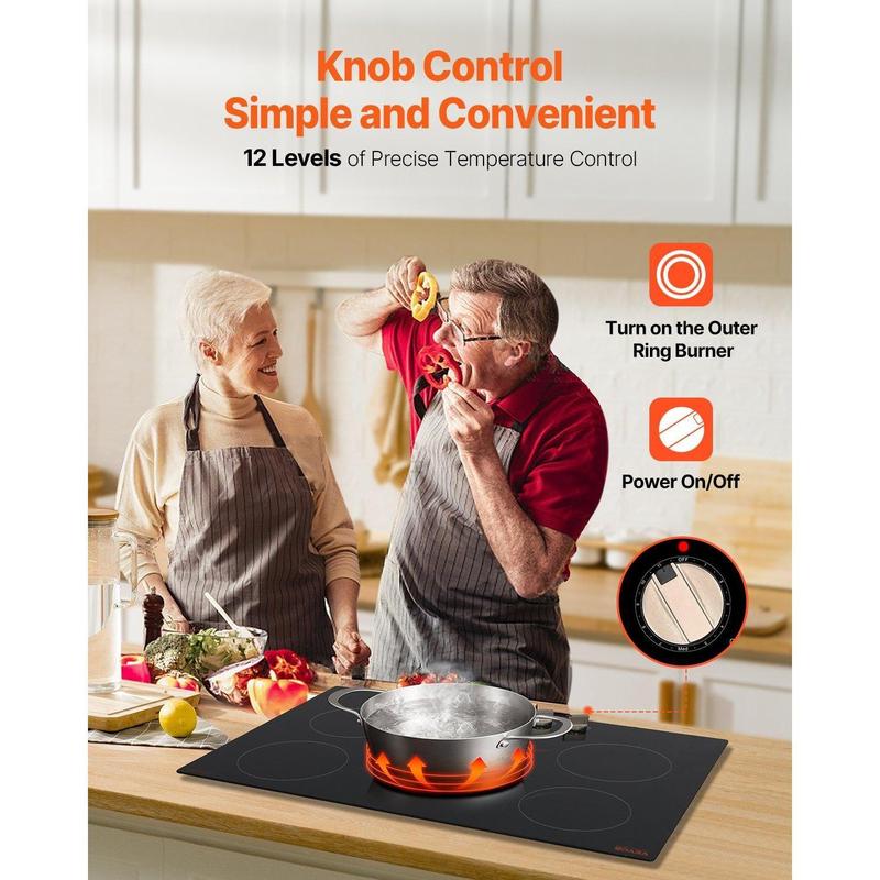 ·Knob Control: With simple, easy-to-use knob controls, this kitchen induction cooktop lets you quickly adjust to the perfect heat level. Each knob can independently control the temperature for flexible cooking, making holiday meals like Christmas, Thanksgiving, Easter, and other special occasions easier than ever.