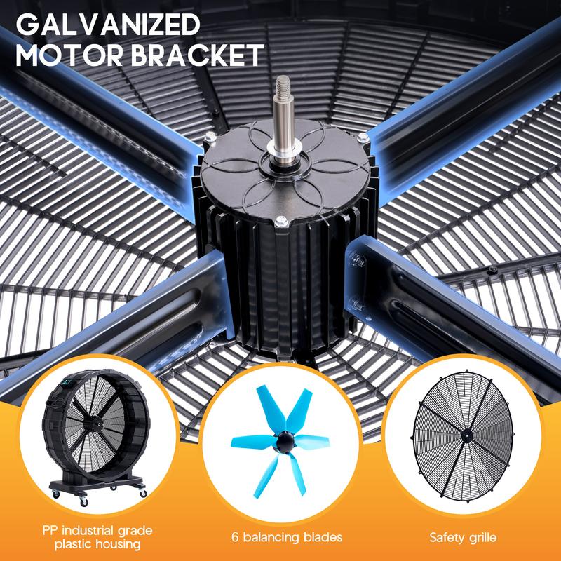 ·Durable Material: Constructed with a rugged PP housing, six precisely balanced blades, and a galvanized motor bracket, this large fan ensures superior strength, stability, and long-lasting durability