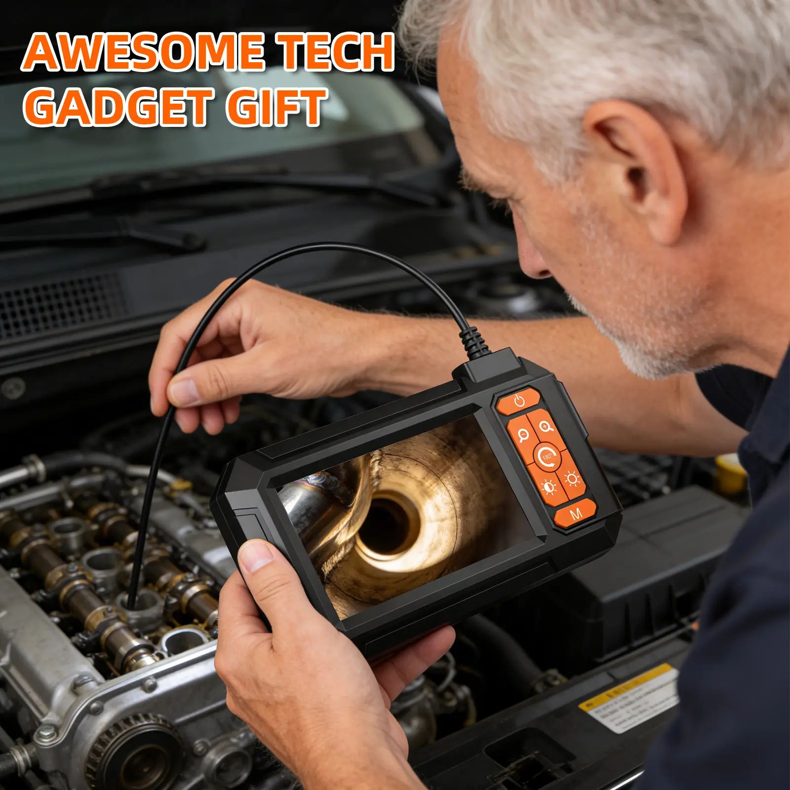 This endoscope camera is perfect for automotive, sewer, and plumbing inspections. Its IP67 waterproof feature makes it suitable for diverse inspection needs. The adjustable LED lights ensure clear visibility in various conditions.
