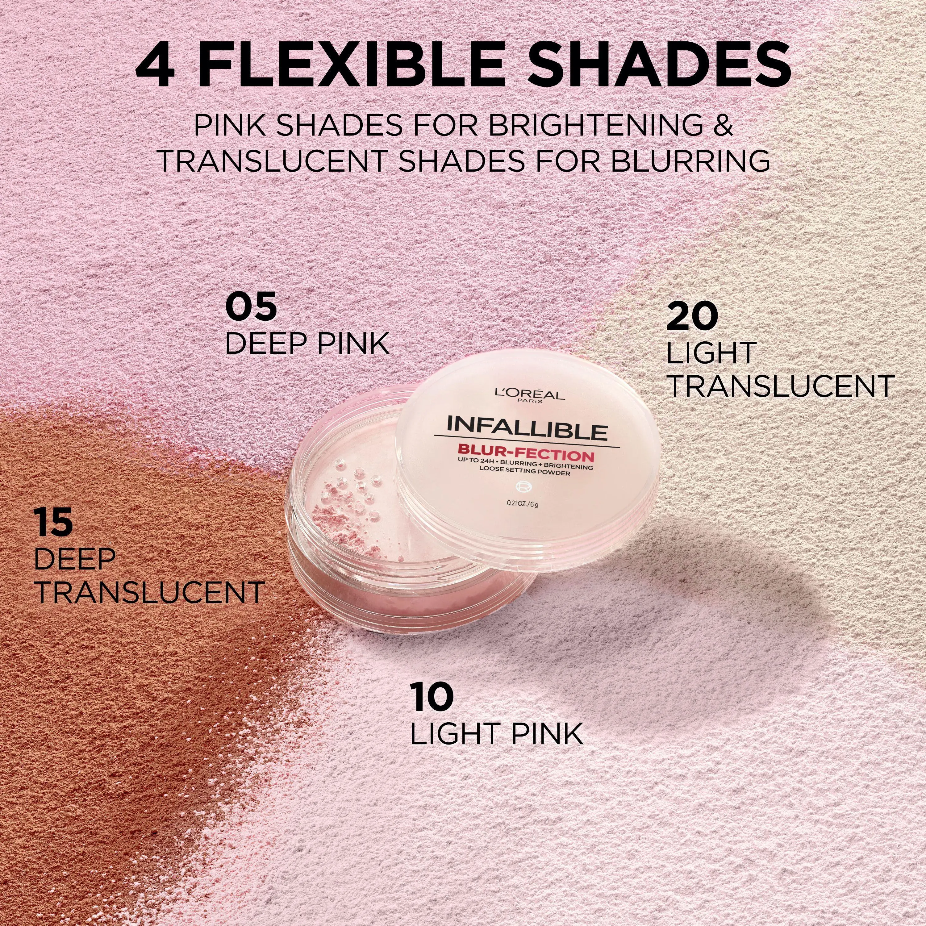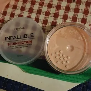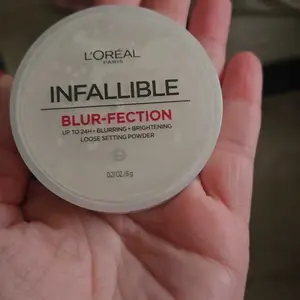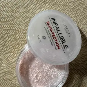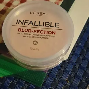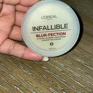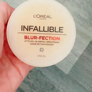 L'Oreal's Infallible Blur-fection Longwear Loose Setting Powder blurs, brightens, and sets makeup for all-day wear. Perfect for highlighting and a brighter complexion.