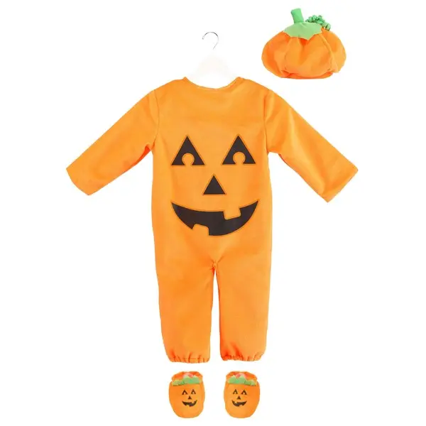 Pumpkin' to Talk AboutDo you know the history of the Jack o' Lantern? There's actually quite a bit of mystery around it, so we've been doing a little reading. We've decided the modern Jack o' Lantern is preferable to what they were up to in long-ago Ireland. Long story short, pumpkins are more aesthetically pleasing than turnips. We do still stand behind the spooky nature of the carved vegetable though. Depending on your Halloween preference (and level of superstition) your Jack o' Lantern can be intended to scare away or welcome some paranormal guests. You can also just use it for a fun decorative light for trick-or-treaters.Alternatively, a Jack o' Lantern makes an excellent costume for the youngest in your family. We're not suggesting leaving them on the front step, but get them ready for their first Halloween with the classic look. As an added bonus, your Jack o' Lantern disguised infant can be a portable ward from evil and an absolutely adorable trick-or-treating companion!Design & DetailsIn this Made by Us Infant Pumpkin Chunkin Costume, your little one will be all set to enjoy the Halloween festivities. This 3 piece costume is designed with super-soft and warm velour fabric to keep your little one comfortable through costume parties, photo-shoots, or a night of trick-or-treating. The hat is designed to look like the top of a pumpkin, complete with stem and vines. The booties look like smaller Jack o' Lanterns with their own leafy tops. Of course, without a smiling Jack o' Lantern face this bright orange ensemble would just be a pumpkin suit so our designers made sure to include a very happy Jack.Halloween TraditionLet's face it, Jack o' Lanterns might be a slightly confusing tradition, but babies dressed like Jack o' Lanterns have always been cute. This year you can continue both traditions with your little one in this Pumpkin Chunkin Costume!