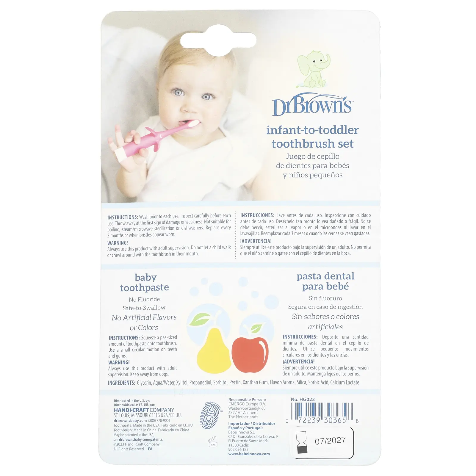 Dr. Brown's Infant to Toddler Toothbrush Set, 0-3 Years, Pink, Apple Pear, 2 Piece Set