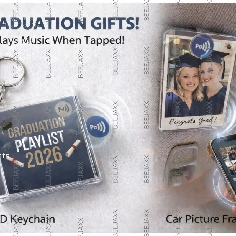 • The Soundtrack of Your Life: An embedded NFC tag sits invisibly inside. Tap your phone to the frame to instantly launch a personalized song, a "Drive Safe" voice memo, or your favorite 2026 graduation playlist.