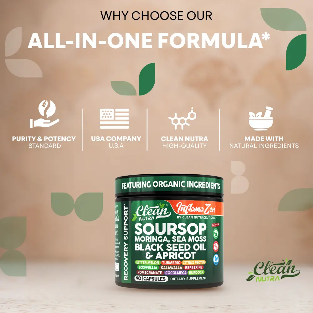 InflamaZen is a daily inflammation and recovery support formula made with organic botanicals like soursop, moringa, sea moss, and black seed oil. Designed to help the body manage oxidative stress, this blend supports cellular health, immune function, and post-workout recovery.* Whether you're looking to reset, recharge, or maintain daily wellness, InflamaZen delivers antioxidant-rich support in just three capsules a day.*
